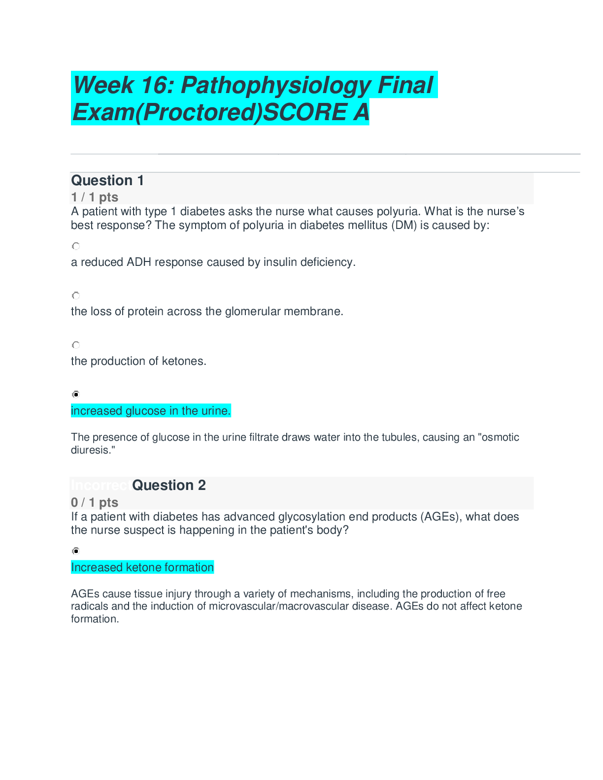 *NURSING > EXAM > Week 16: Pathophysiology Final Exam(Proctored)SCORE A (All)