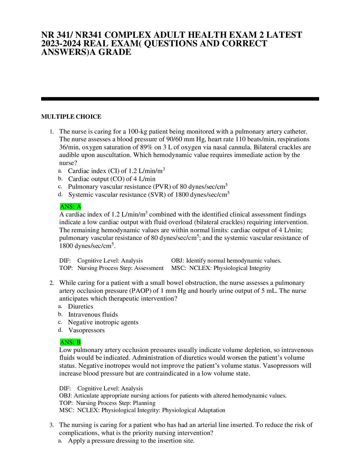 *NURSING > EXAM > NR 341/ NR341 COMPLEX ADULT HEALTH EXAM 2 LATEST 2023-2024 REAL EXAM( QUESTIONS AND CORRECT ANSWERS)A GRADE (All)