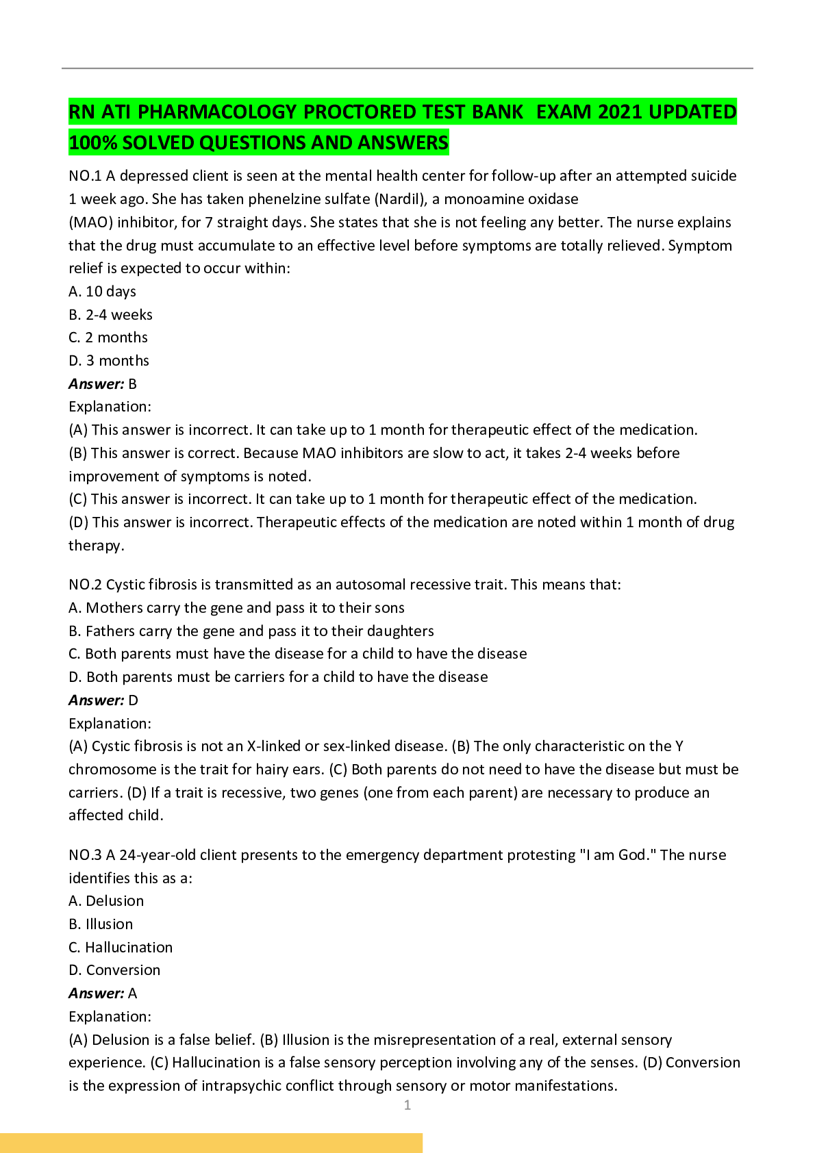 *NURSING > QUESTIONS & ANSWERS > RN ATI PHARMACOLOGY PROCTORED TEST BANK EXAM 2021 UPDATED 100% SOLVED QUESTIONS AND ANSWERS (All)