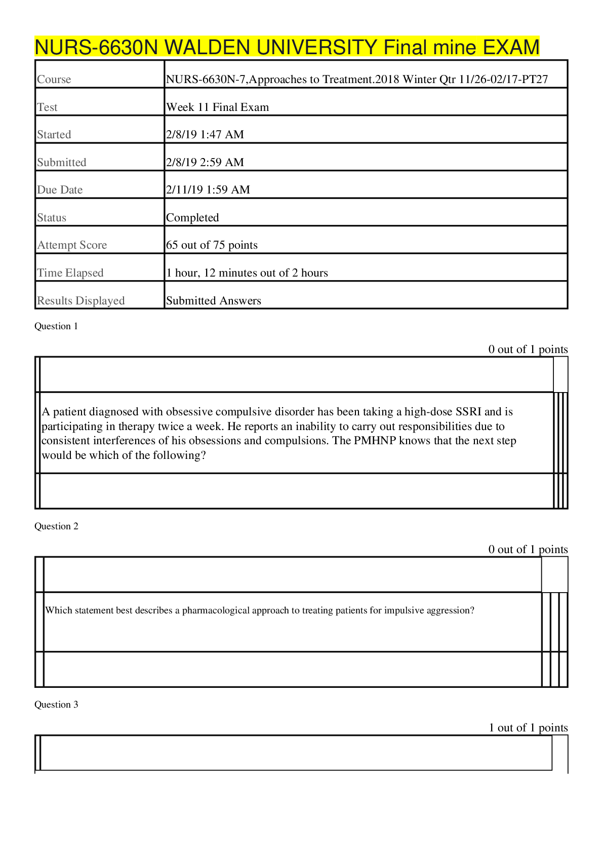 *NURSING > EXAM > NURS-6630N WALDEN UNIVERSITY Final mine EXAM ALREADY GRADED A (All)