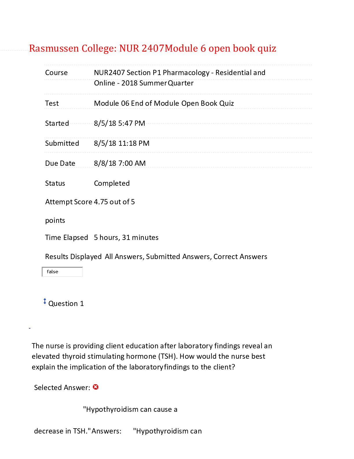 *NURSING > QUESTIONS & ANSWERS > NUR 2407 Module 6 open book quiz brain testing questions and answers complete docs (All)