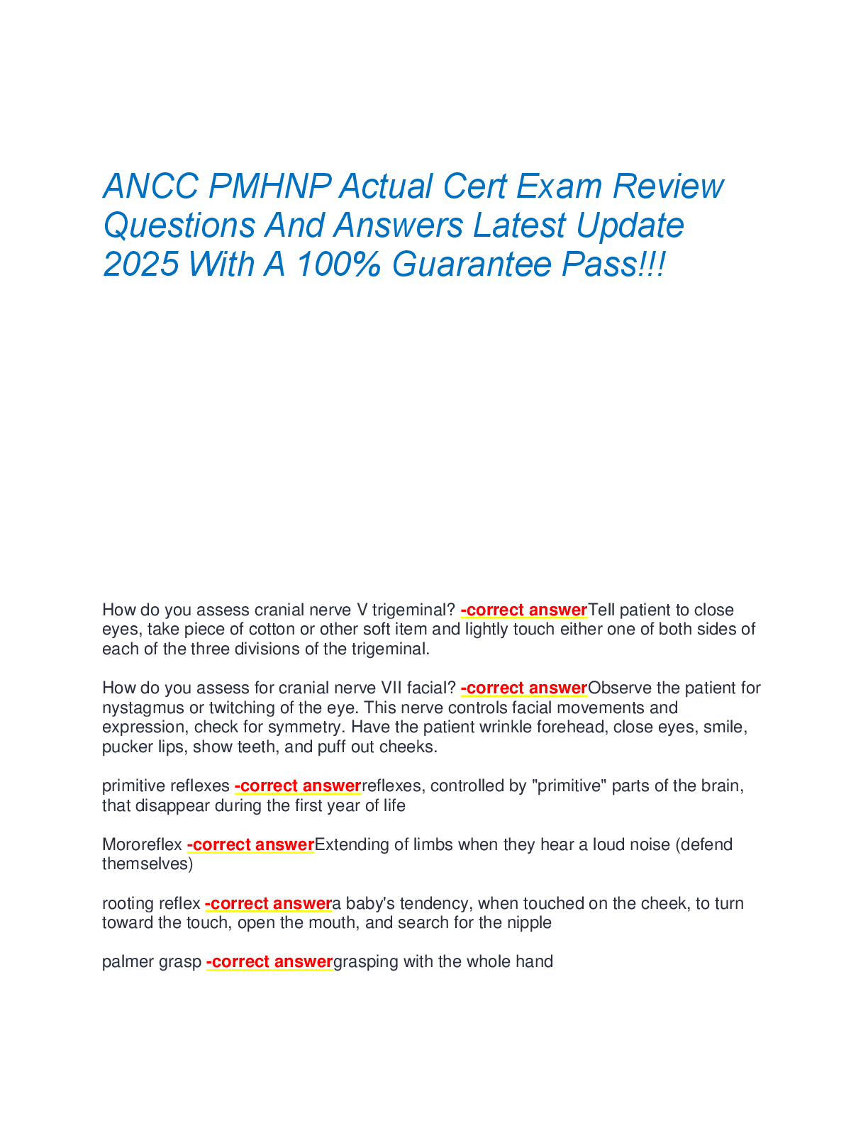 *NURSING > EXAM > ANCC PMHNP Actual Cert Exam Review Questions And Answers Latest Update 2025 With A 100% Guarantee Pass!!! (All)