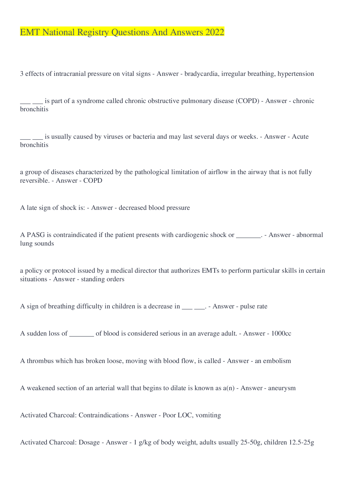 *NURSING > EXAM > EMT National Registry Questions And Answers 2022( With Complete top Solution Rated A) (All)