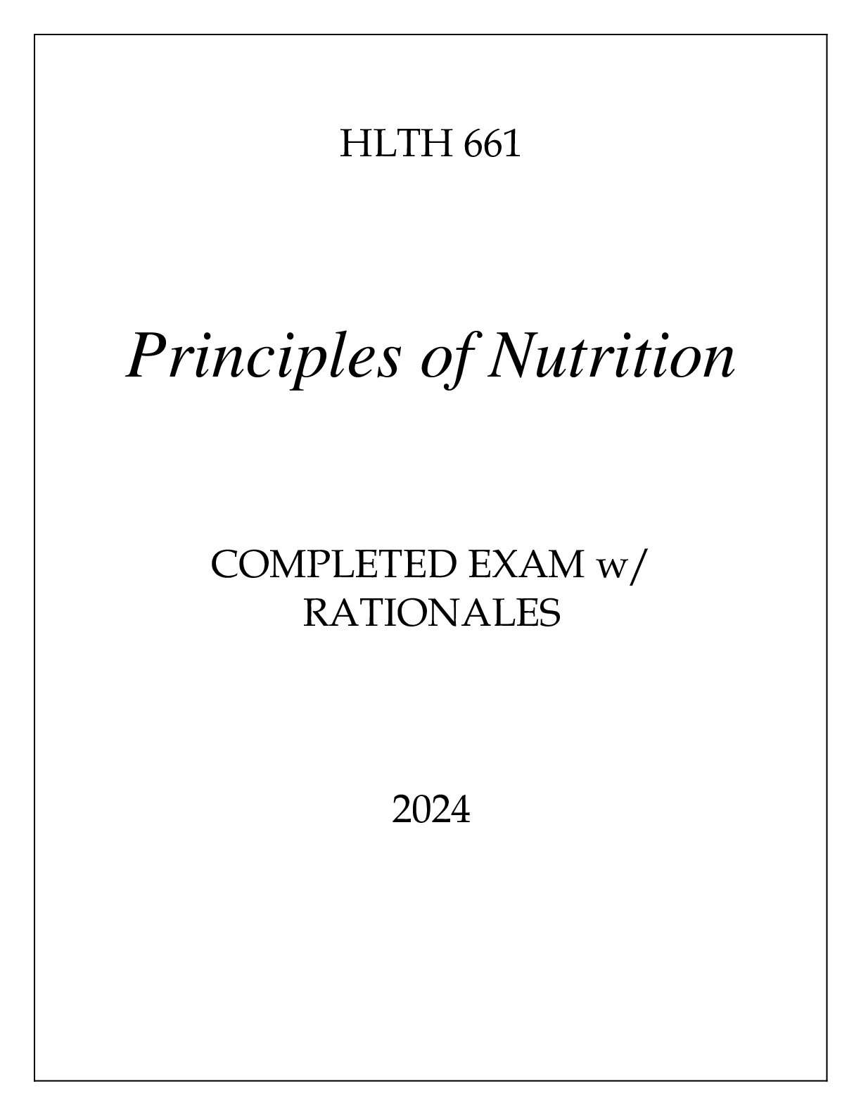 *NURSING > EXAM > HLTH 661 PRINCIPLES OF NUTRITION COMPLETED EXAM WITH RATIONALES 2024 (All)