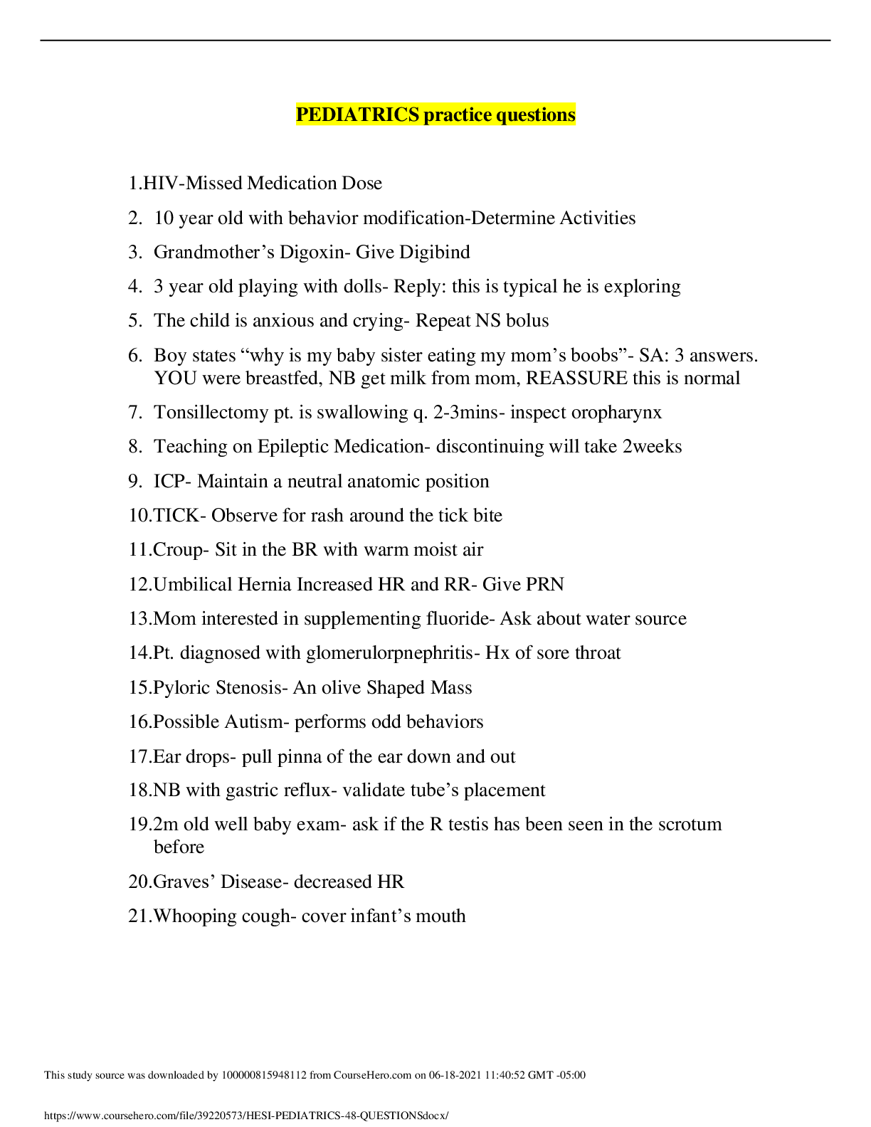 *NURSING > EXAMs > HESI VI EXIT EXAM QUESTIONS AND CORRECT ANSWERS (100%) (All)