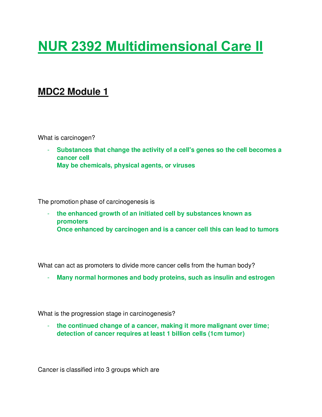 *NURSING > STUDY GUIDE > NUR 2392 / NUR2392: Multidimensional Care II / MDC 2 Module 1 Exam Study Guide (Latest 2021/ 2022) Rasmussen (All)