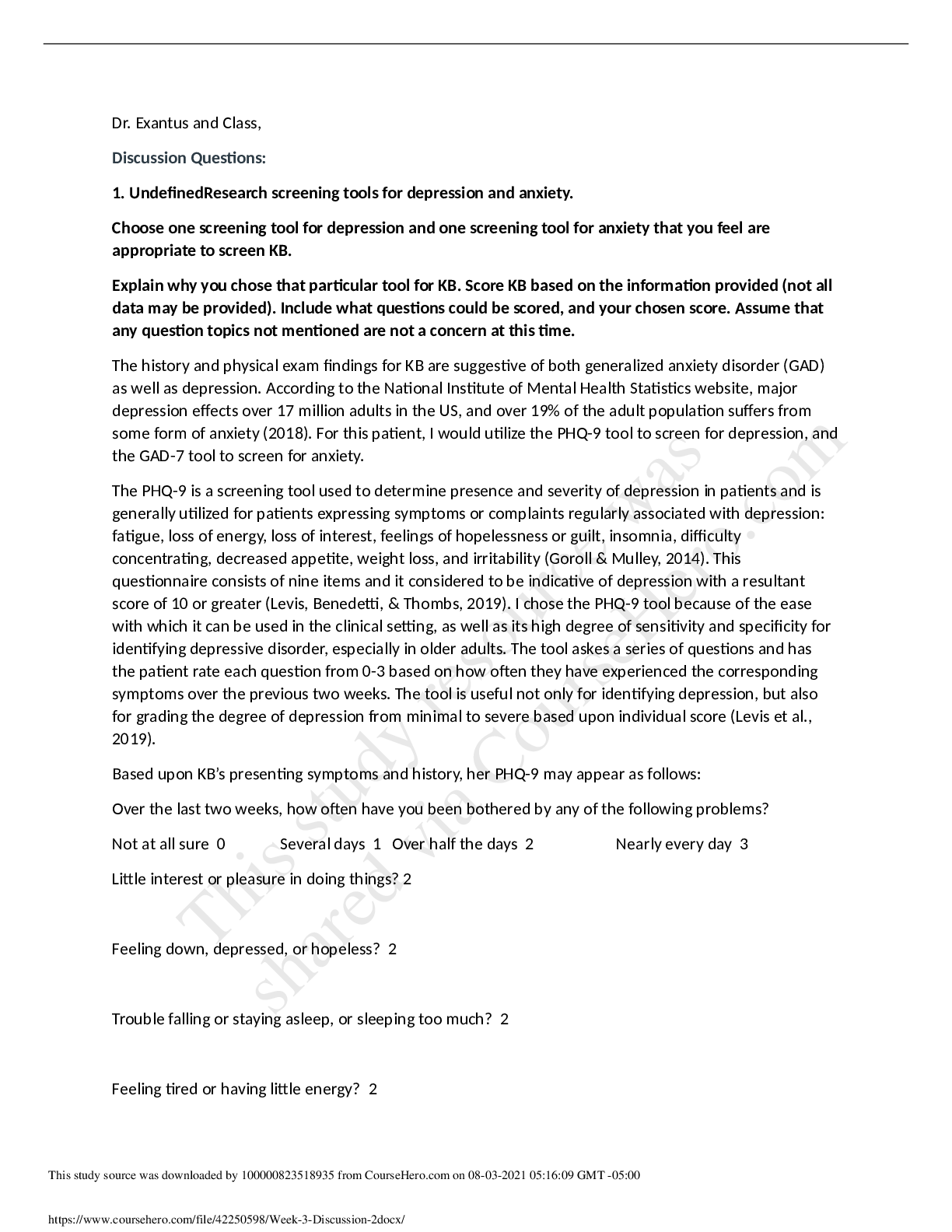 *NURSING > EXAMs > NUR 326 Mental Health ATI Quiz 2 - Chamberlain College of Nursing | NUR326 Mental Health ATI Quiz 2 (All)