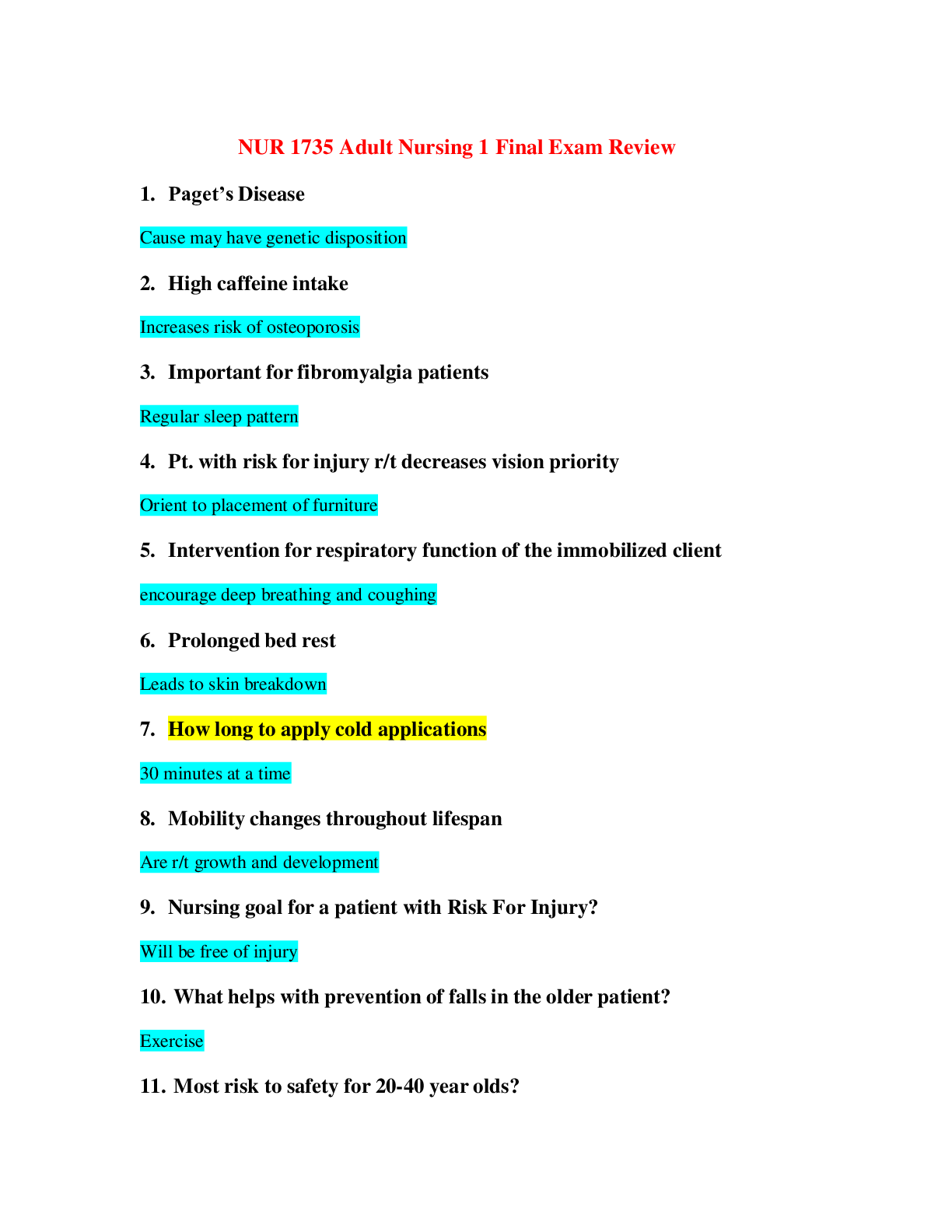 *NURSING > EXAM REVIEW > NUR 1735 / NUR 1735 Adult Nursing 1 Final Exam Review (Latest 2021/2022 Rasmussen College) (All)