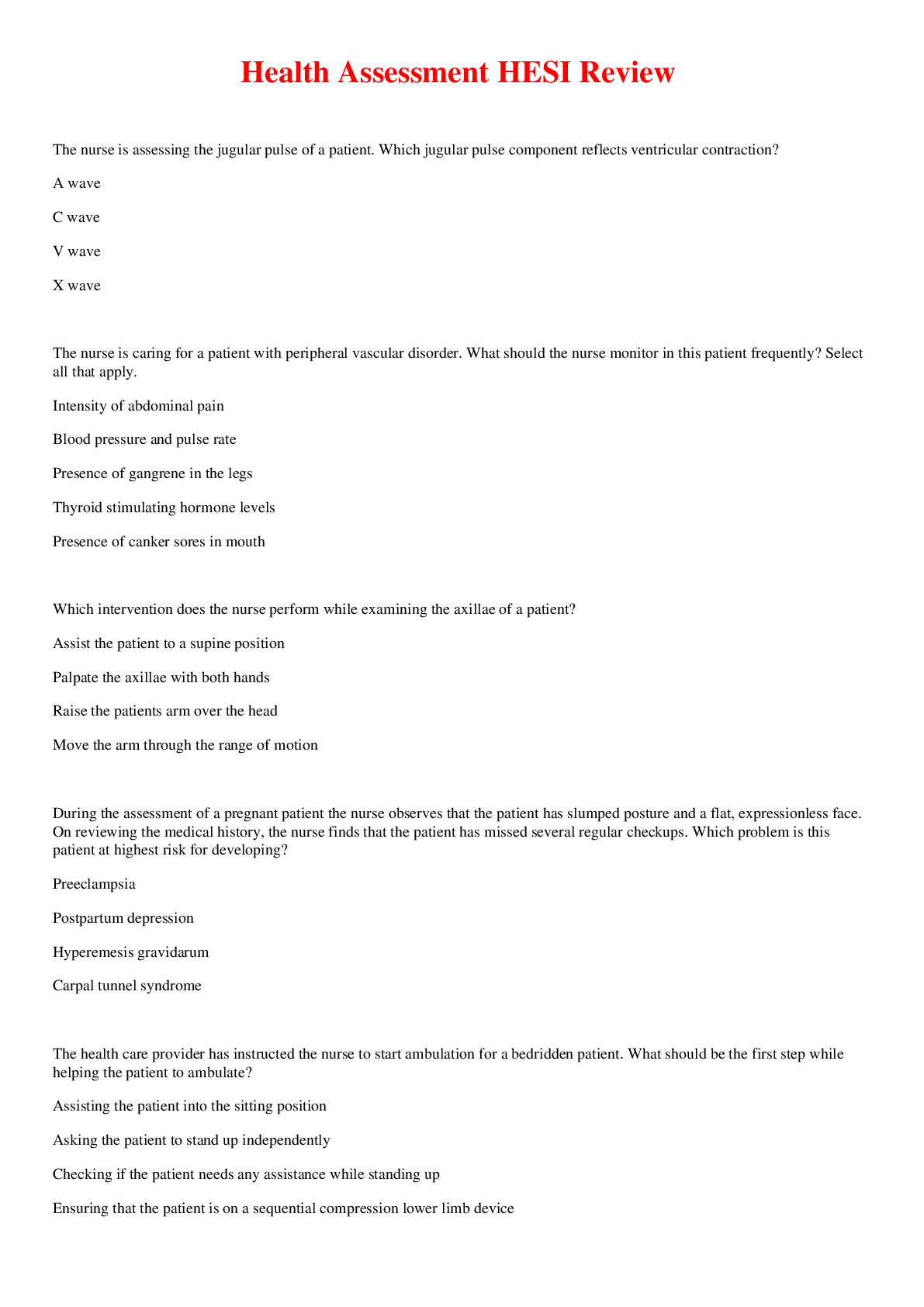 *NURSING > EXAM REVIEW > Health Assessment HESI Review (All)