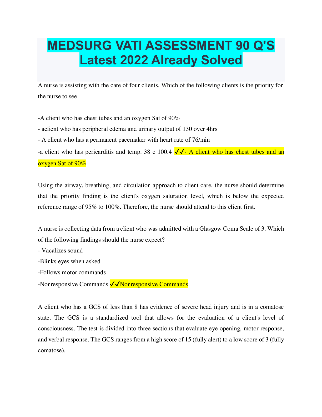 *NURSING > QUESTIONS & ANSWERS > MEDSURG VATI ASSESSMENT 90 Q'S With Accurate answers, Graded A+ (All)