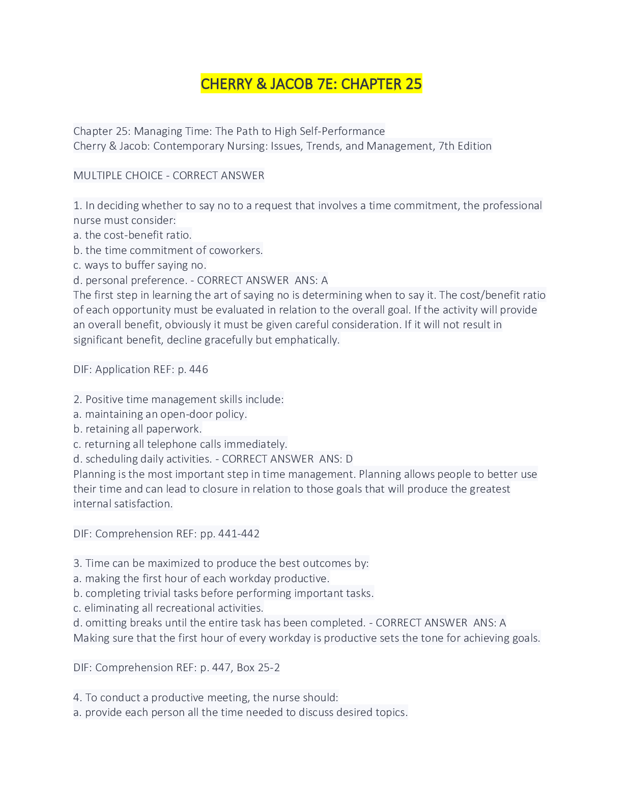 *NURSING > EXAM > Cherry & Jacob 7e Chapter 25 (All)