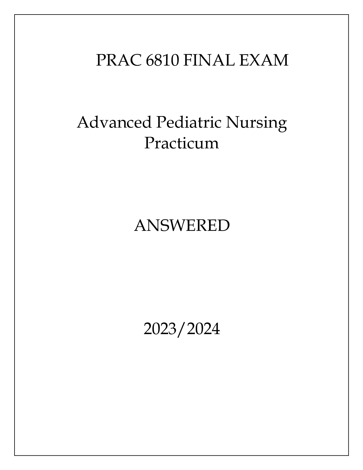 *NURSING > EXAM > PRAC 6810 FINAL EXAM ADVANCED PEDIATRIC NURSING PRACTICUM 20232024 (All)