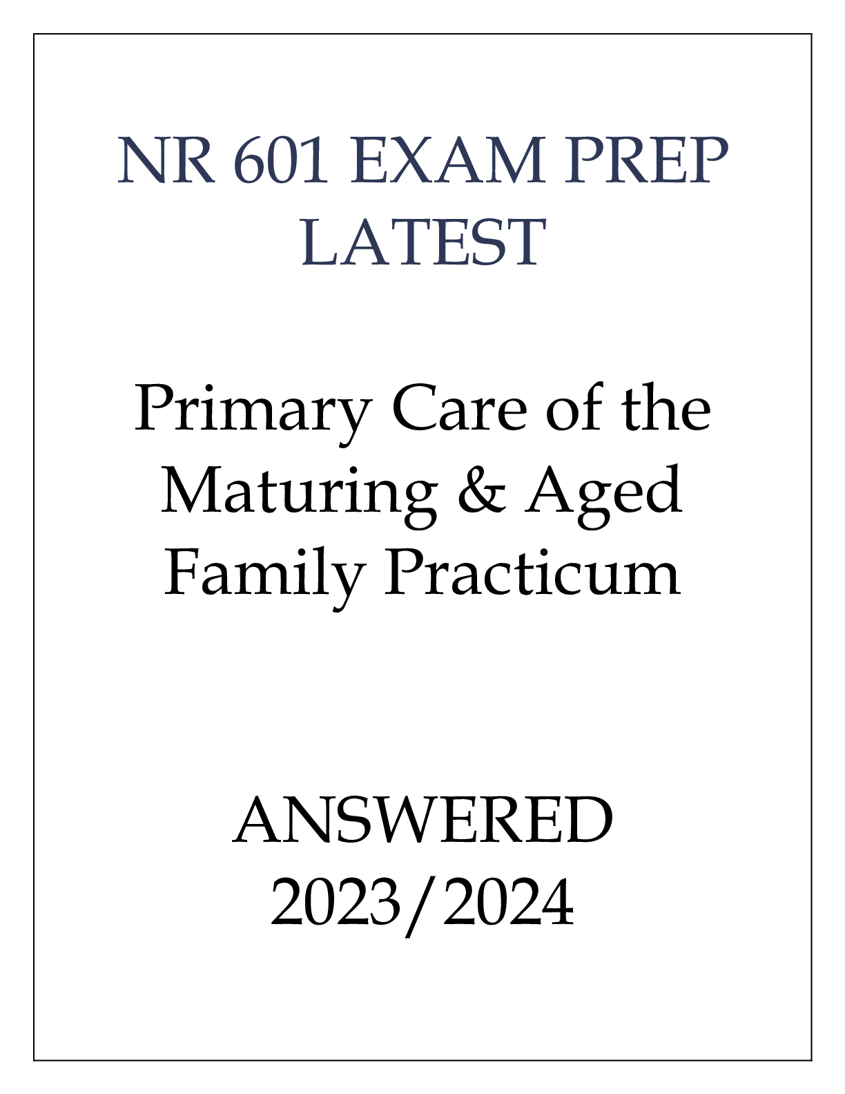 *NURSING > EXAM > NR 601 EXAM PREP LATEST PRIMARY CARE OF THE MATURING & AGED FAMILY PRACTICUM ANSWERED 2023 (All)