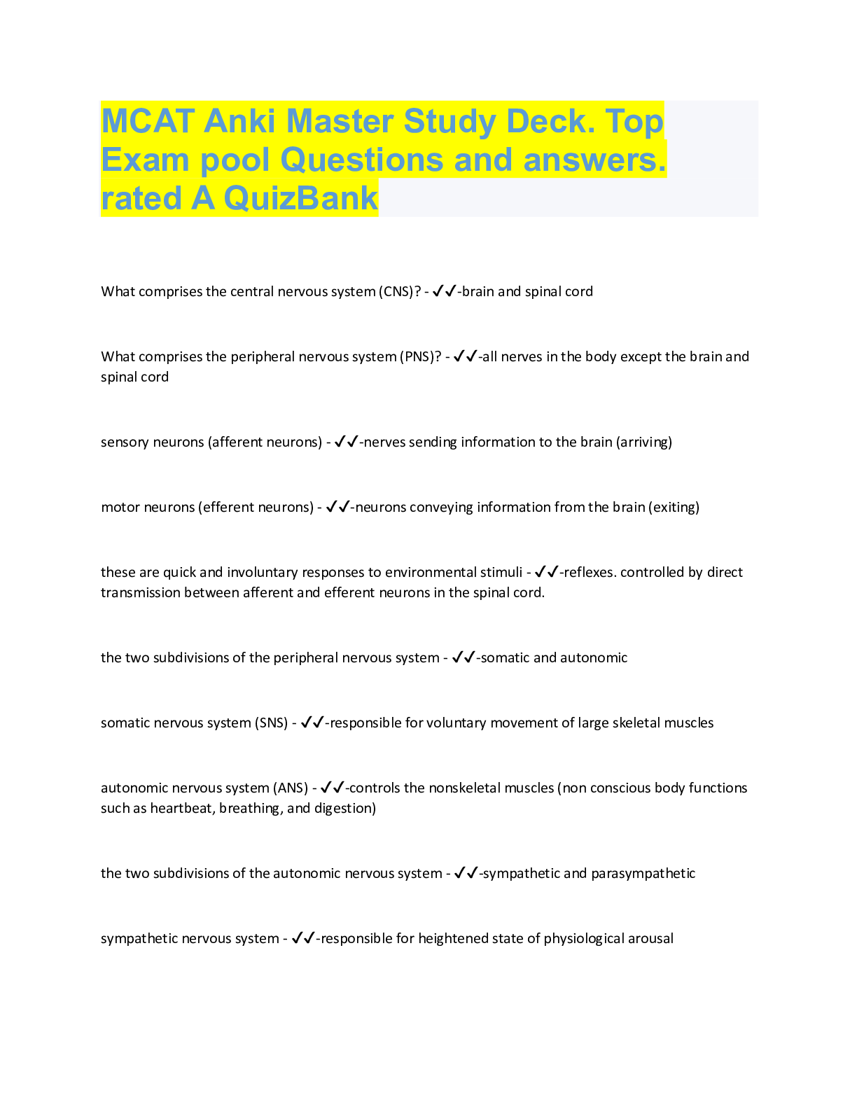 *NURSING > QUESTIONS & ANSWERS > MCAT Anki Master Study Deck. Top Exam pool Questions and answers. rated A QuizBank (All)