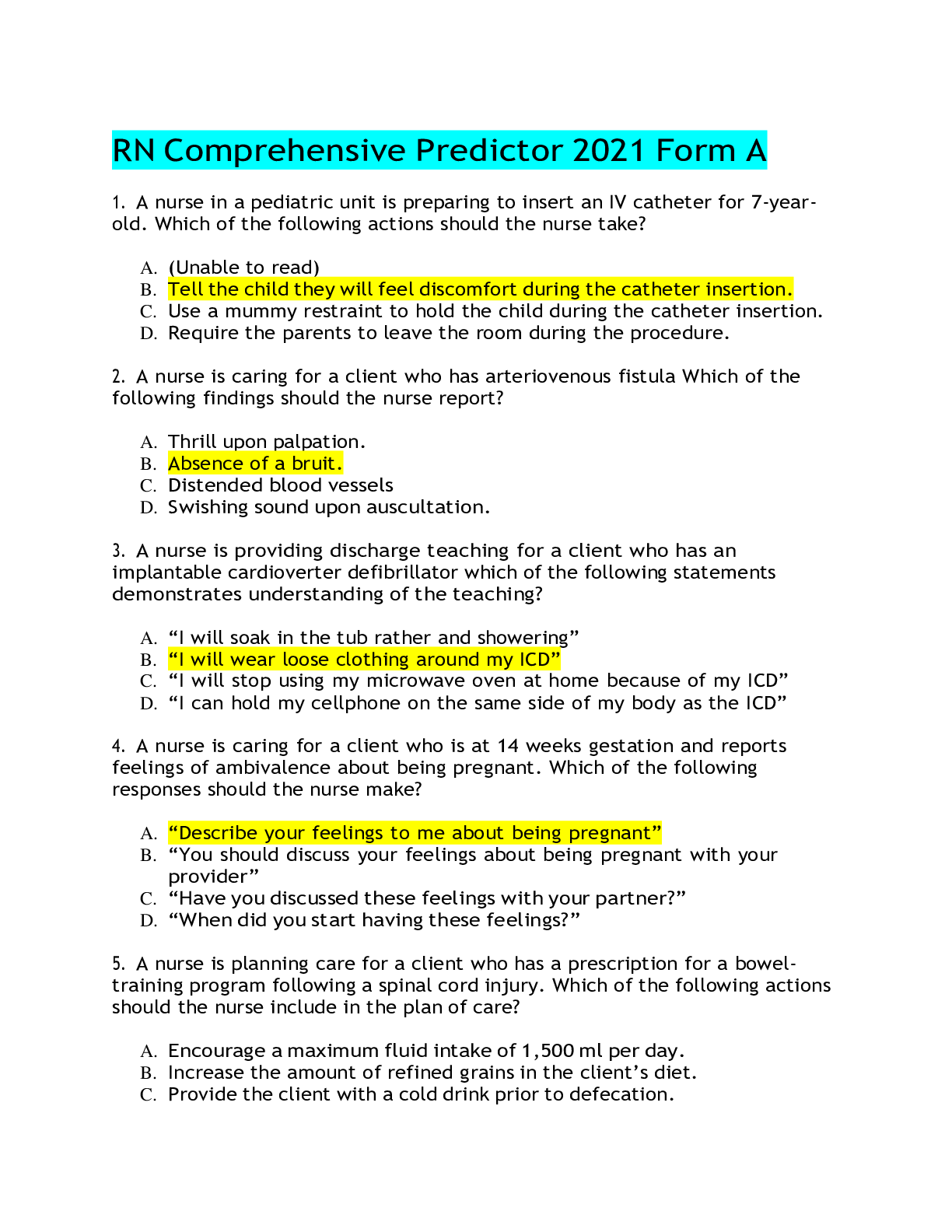 *NURSING > STUDY GUIDE > RN ATI Capstone Proctored Comprehensive Predictor 2021 (All)