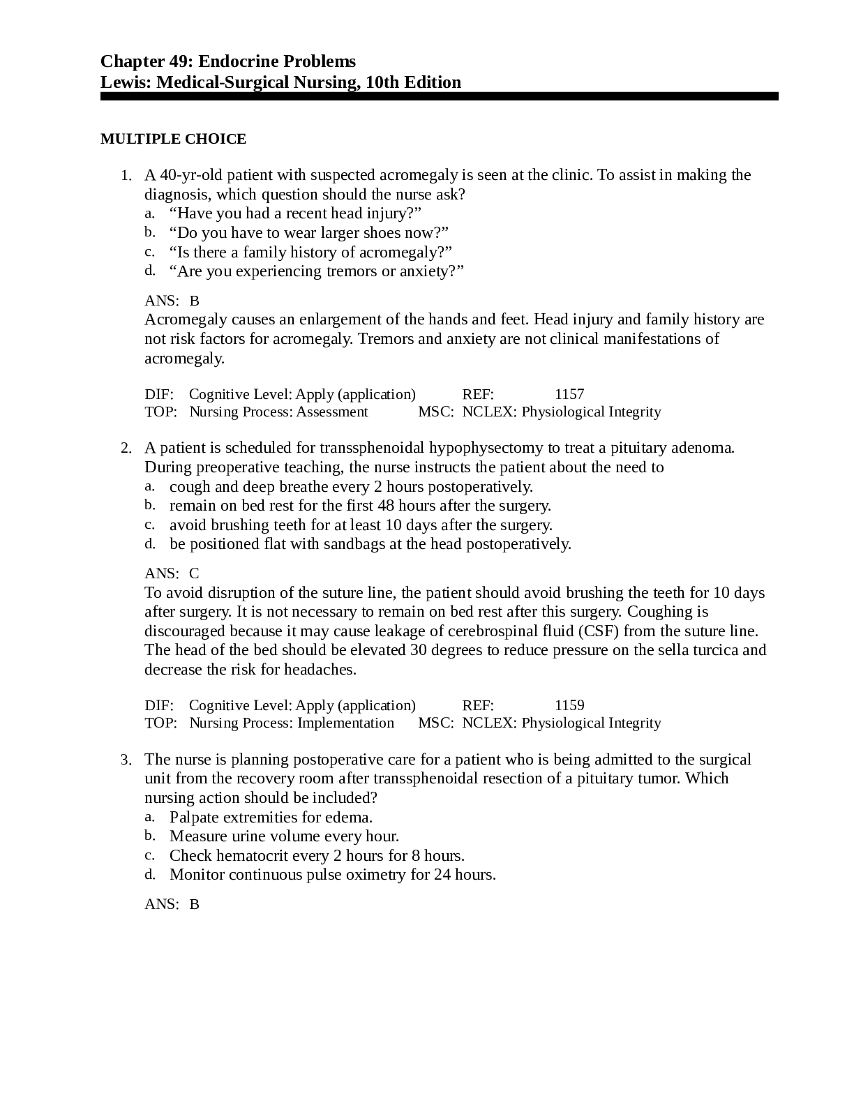 *NURSING > QUESTIONS & ANSWERS > Chapter 49: Endocrine Problems Medical-Surgical Nursing, Questions & answers > Endocrine Problems Lewis: Medical-Surgical Nursing, 10th Edition (answers/ rationales) 2021 (All)