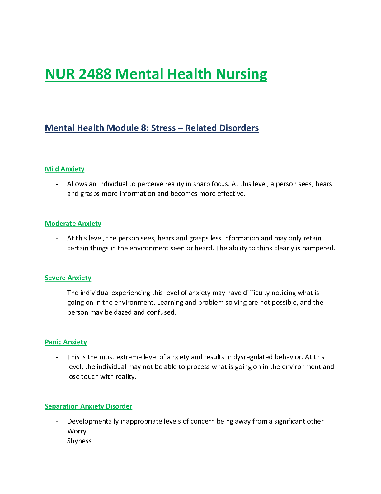 *NURSING > Summary > NUR2488 / NUR 2488: Mental Health Nursing Module 8 Summary Notes (Latest Update) Rasmussen (All)
