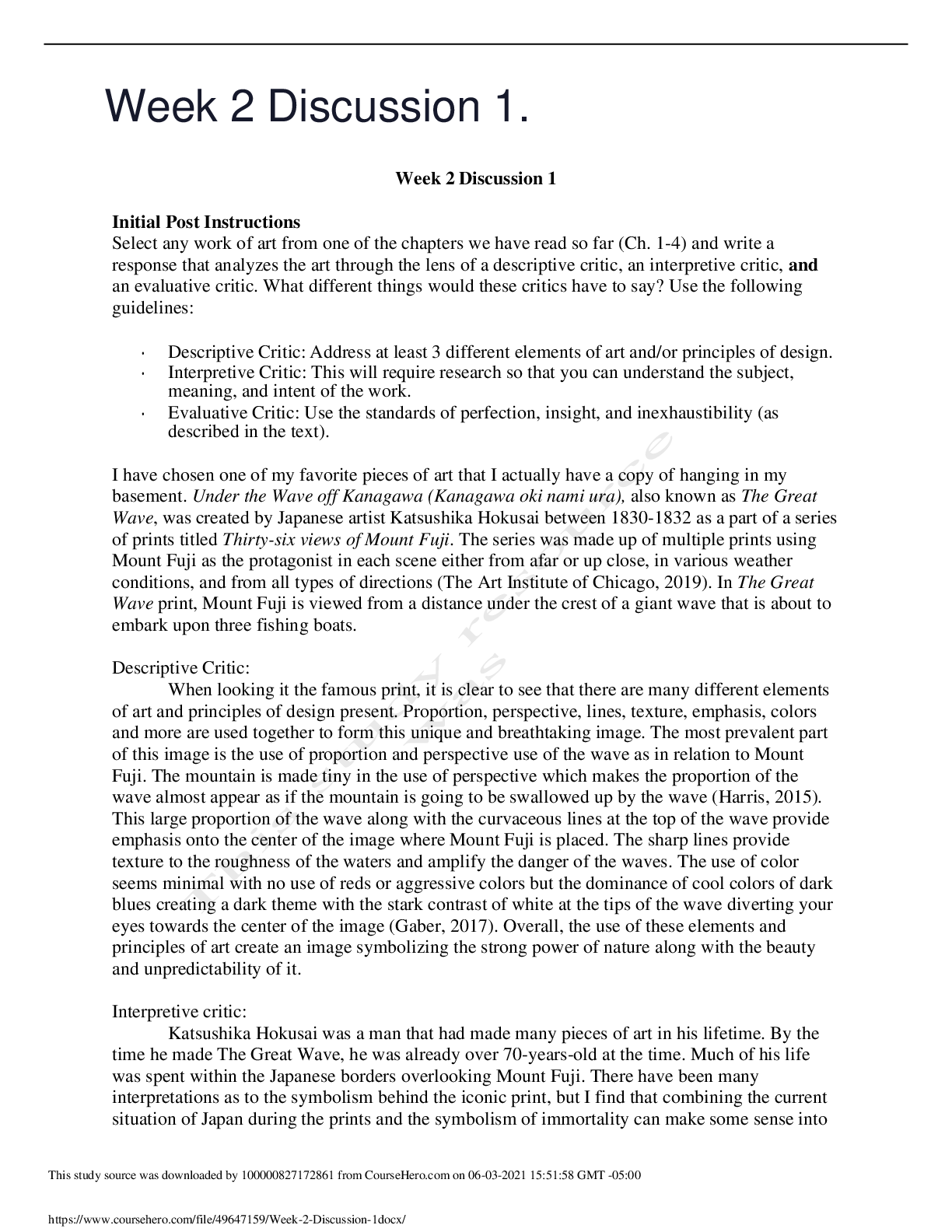 *NURSING > EXAM > Week 2 Discussion 1.,WELL VERIFIED. (All)