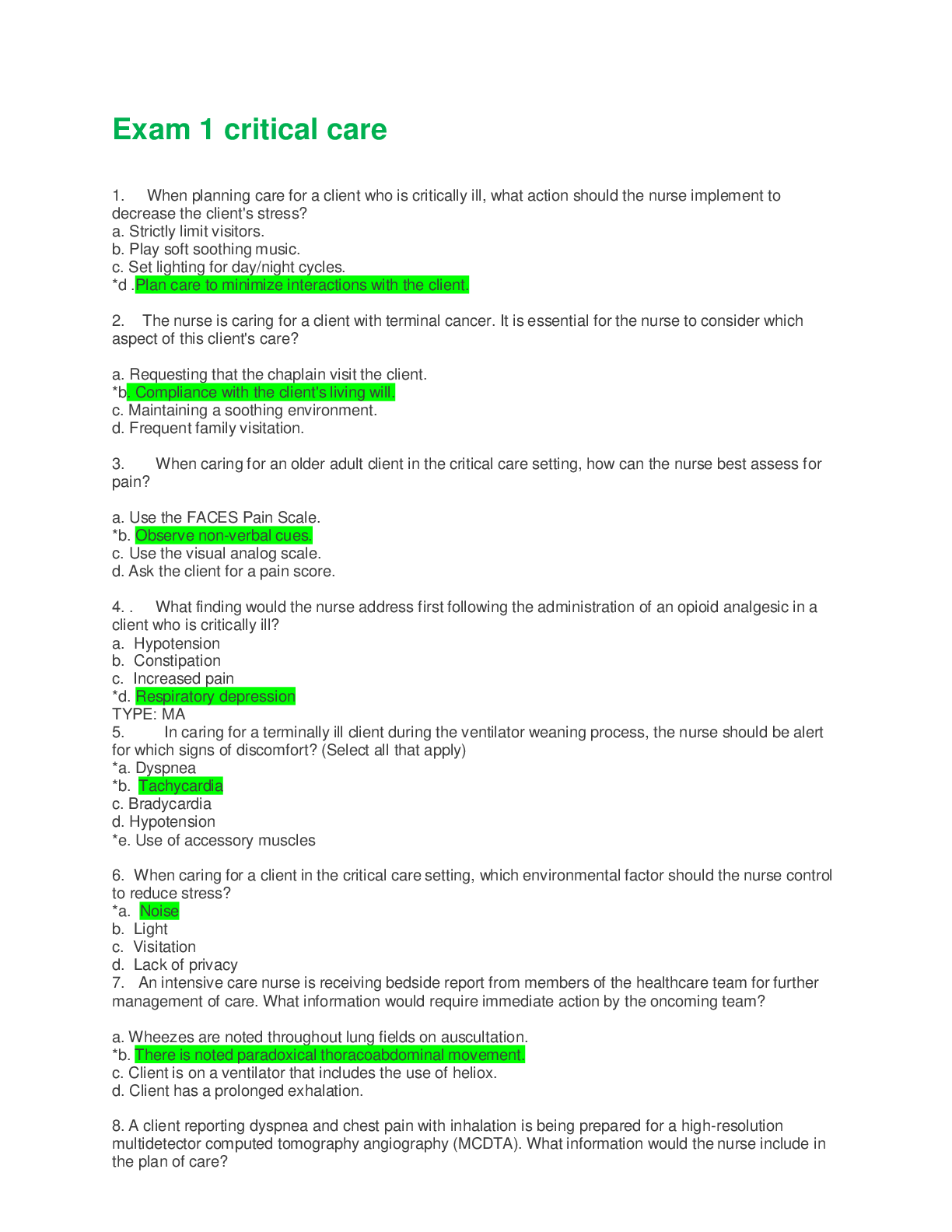 *NURSING > EXAM > NR 340- critical care Exam 1 QUESTIONS WITH HIGHLIGHTED ANSWERS GRADED A+- Chamberlain (All)