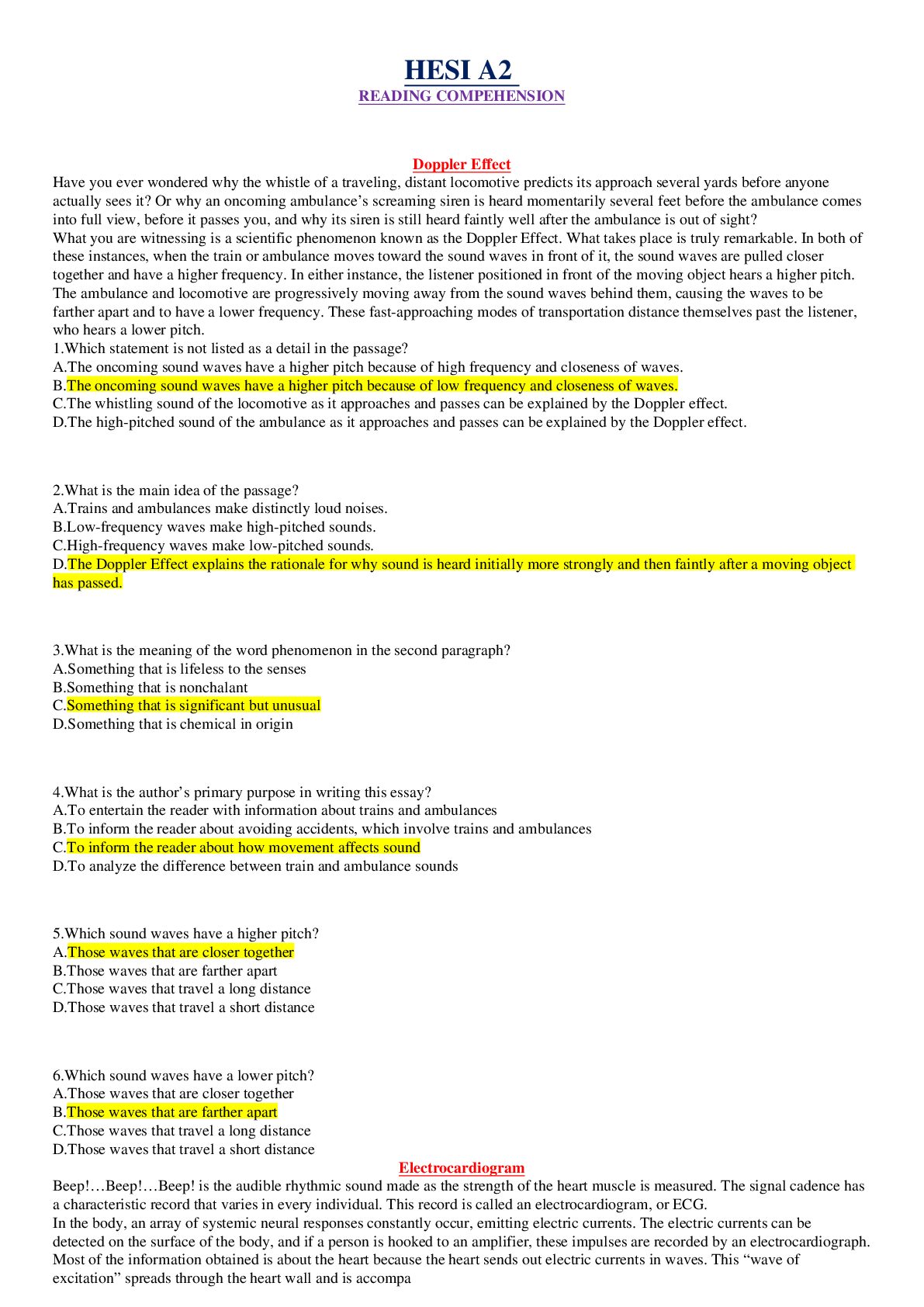 *NURSING > HESI > HESI A2 READING COMPEHENSION Doppler Effect (All)