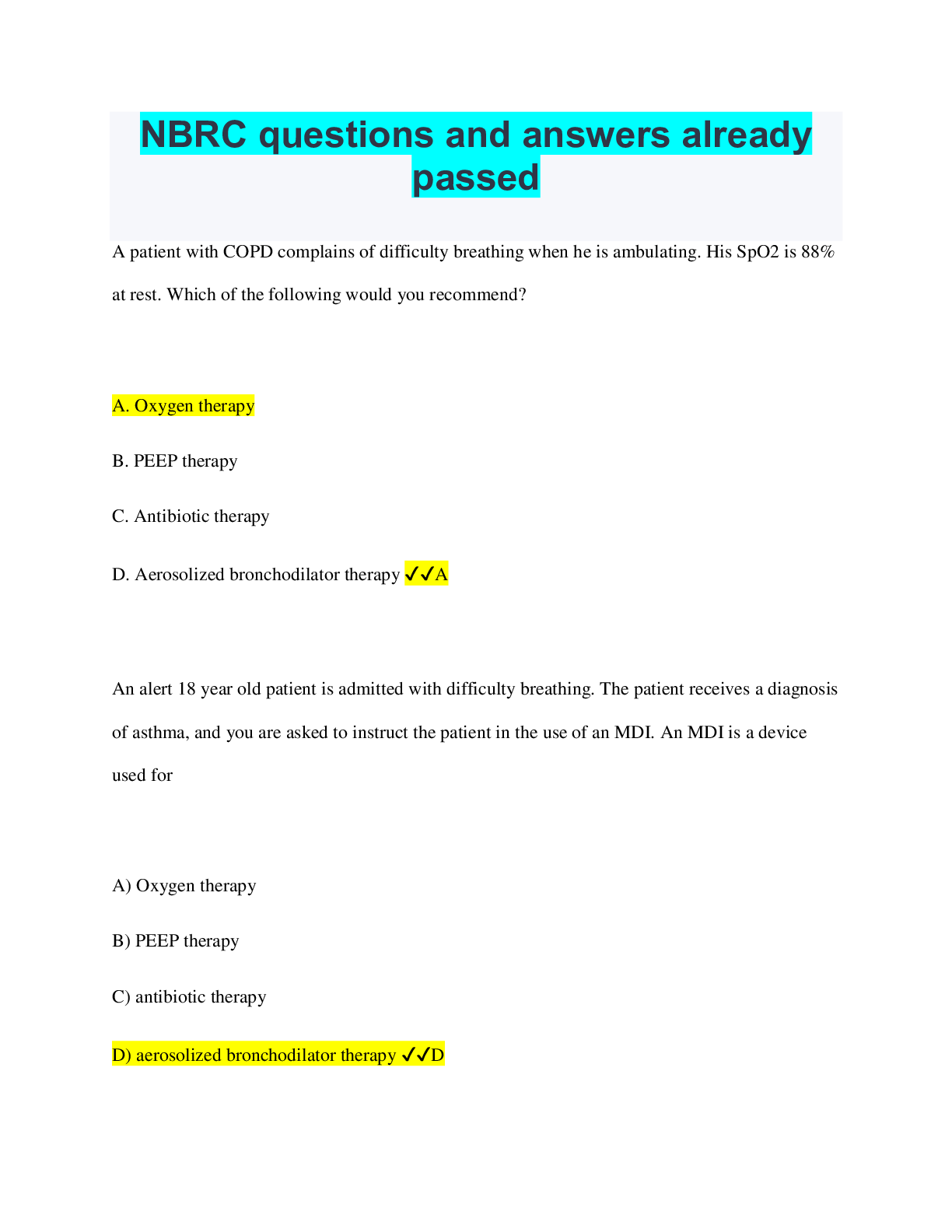 *NURSING > QUESTIONS & ANSWERS > NBRC questions and answers already passed (All)