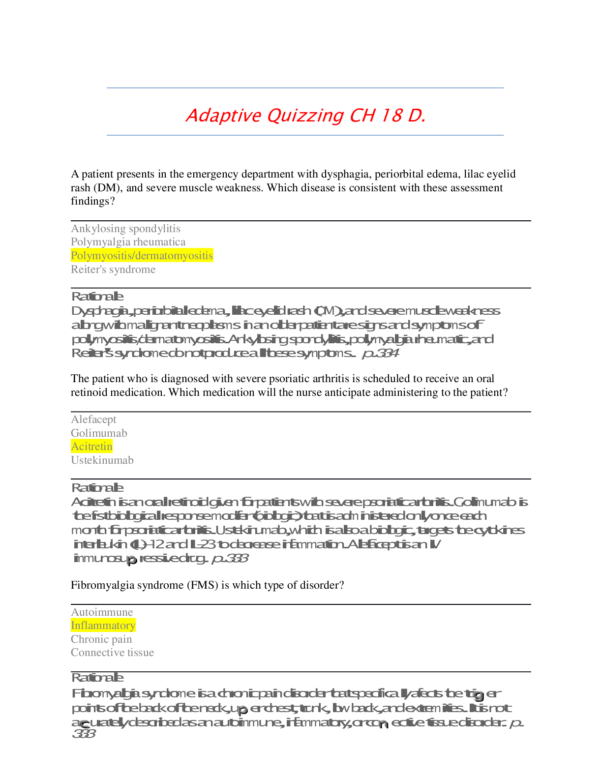 *NURSING > EXAM > NUR 1020C_Adaptive Quizzing CH 18 D | Highly Rated Quiz Bank | Questions and Answers. (RATED A). (All)