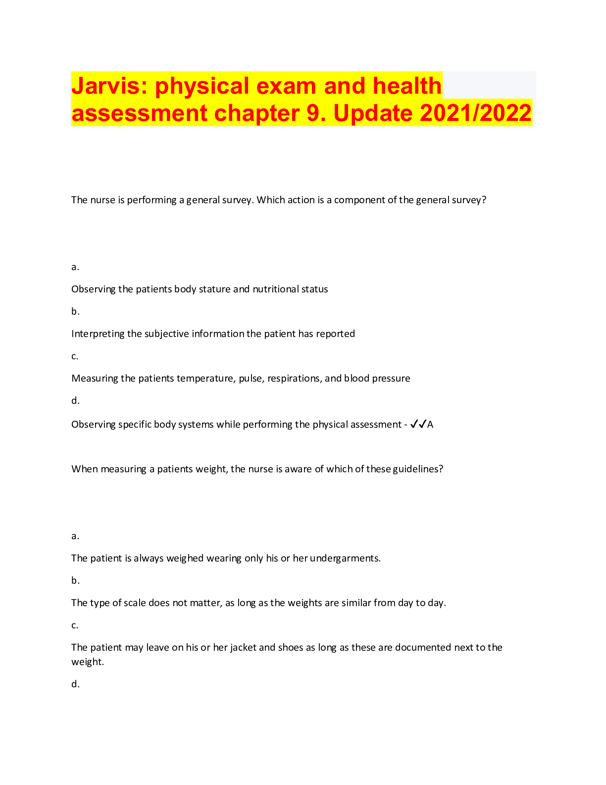 *NURSING > QUESTIONS & ANSWERS > Jarvis: physical exam and health assessment chapter 9. Update 2021/2022 (All)