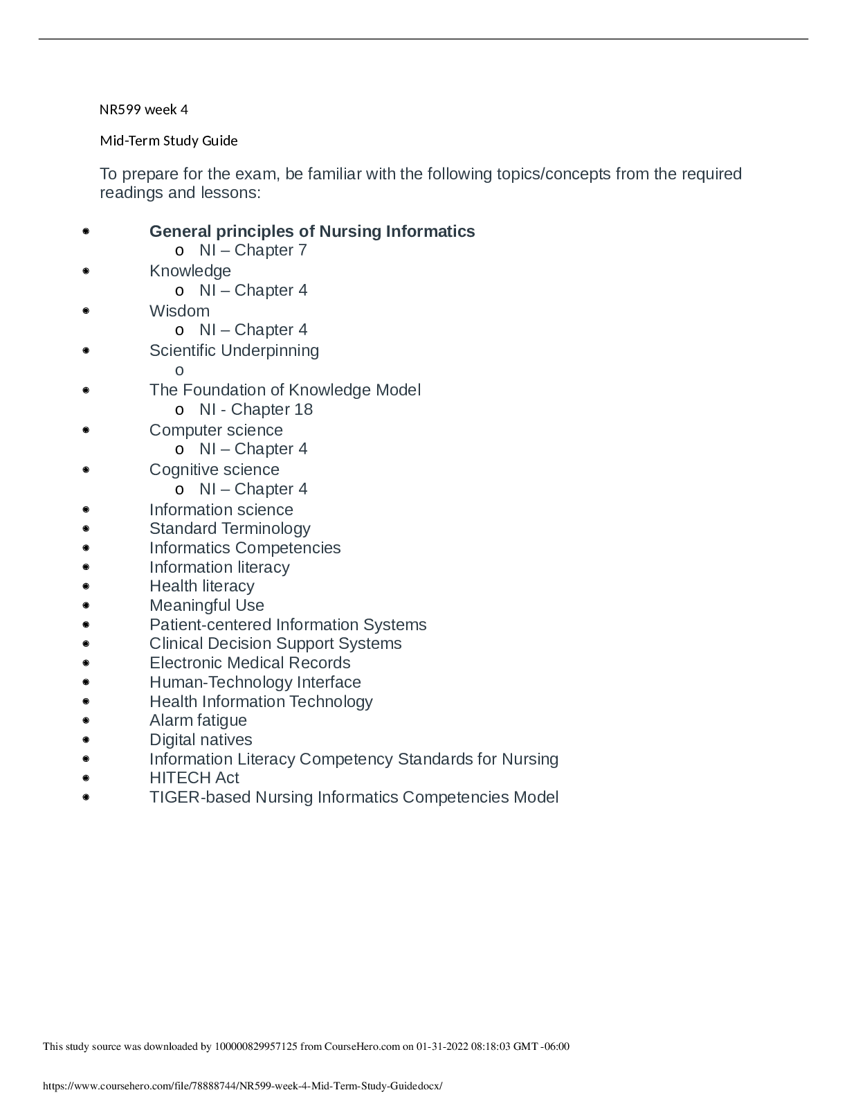 *NURSING > STUDY GUIDE > NR-599 Week 4 Midterm Review & Study Guide | Download To Score An A (All)