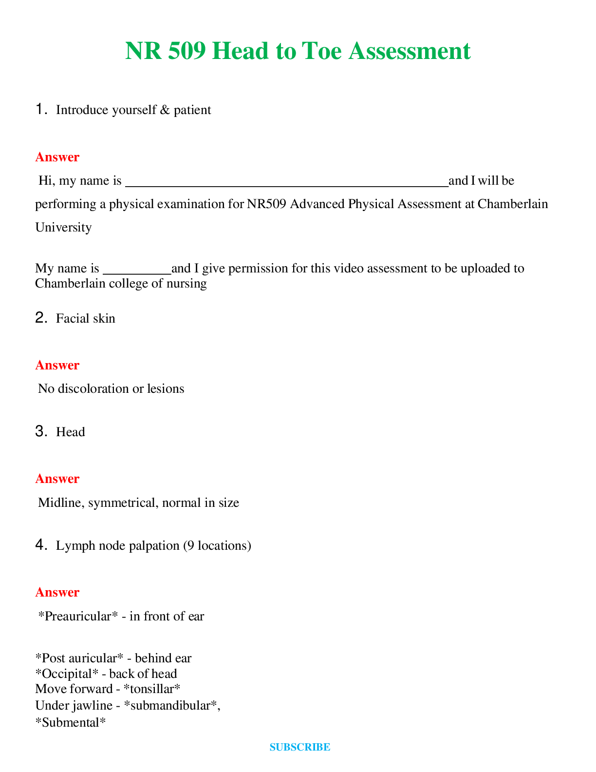 *NURSING > EXAMs > NR 509 Head to Toe Assessment (Latest 2024 / 2025) Questions & Answers with rationales (All)