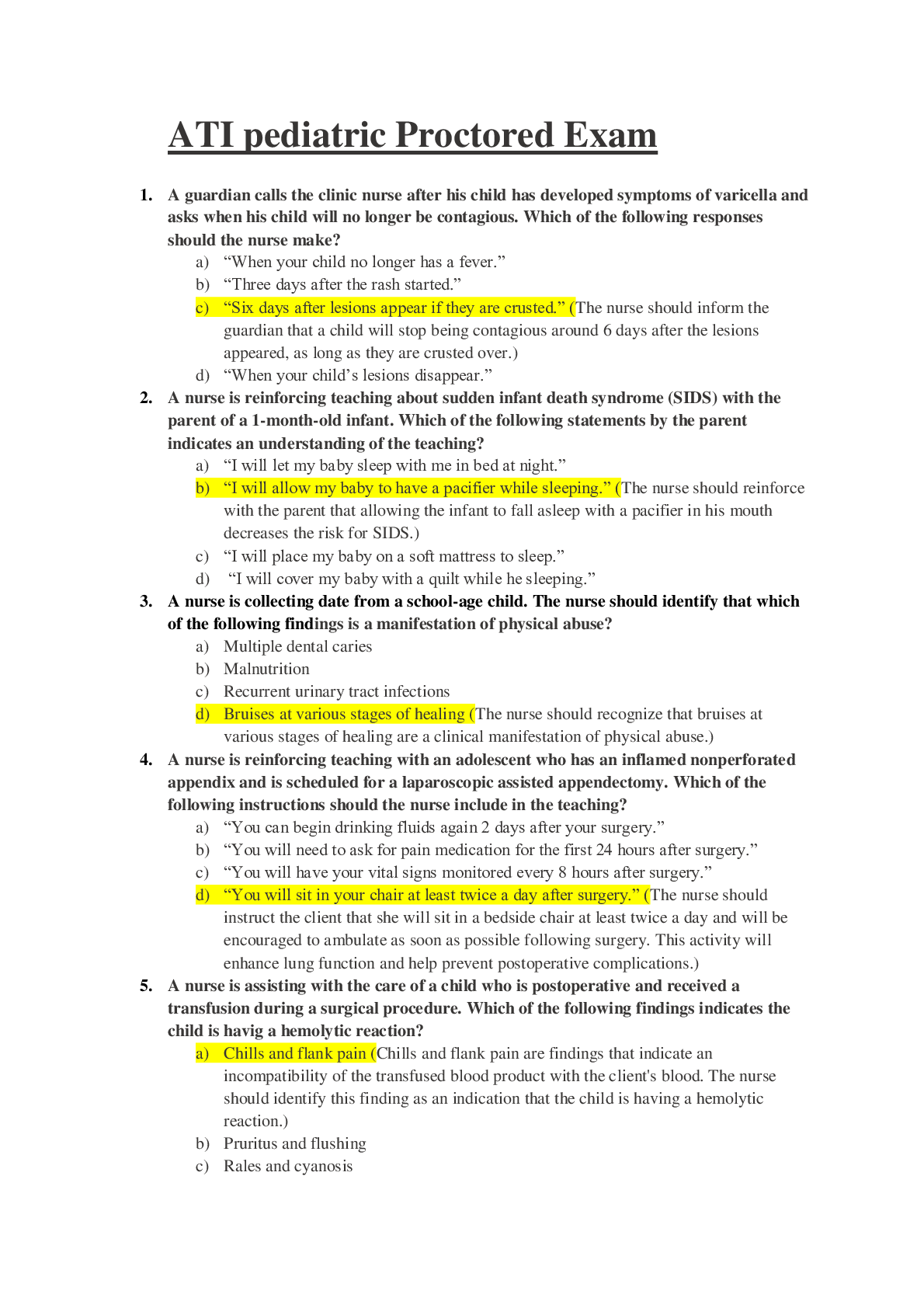 *NURSING > EXAM PROCTORED > ATI pediatric Proctored Exam latest and graded A (All)