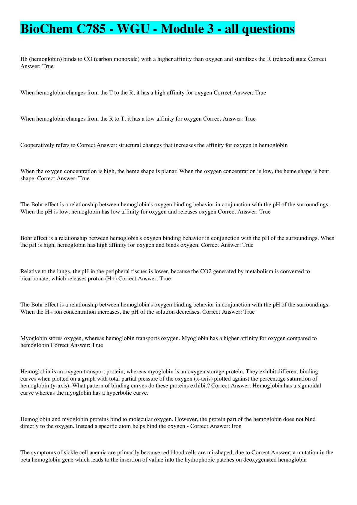 BIOCHEM C785 - WGU - MODULE 1 - ALL QUESTIONS BIOCHEM C785 - WGU - MODULE 2 - ALL QUESTIONS BIOCHEM C785 - WGU - MODULE 3 - ALL QUESTIONS BIOCHEM C785 - WGU - MODULE 4 - ALL QUESTIONS BIOCHEM C785...