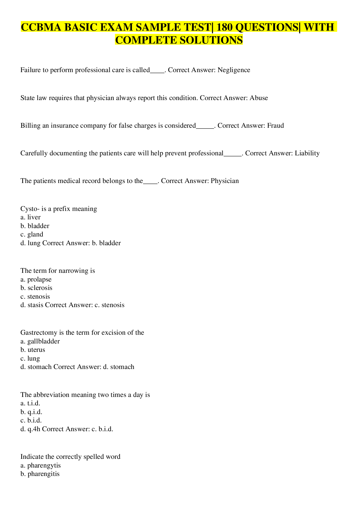 Bundle for CCBMA Exams Compilation