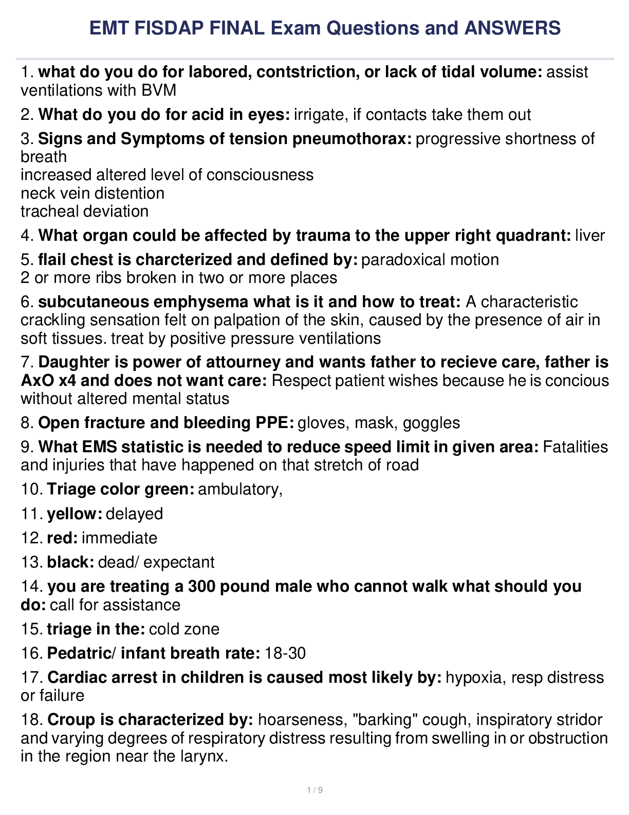 EMT FISDAP FINAL Exam Questions and ANSWERS FISDAP FINAL Exam Questions with Correct Answers. FISDAP FINAL Exam Questions and Answers FISDAP Operations study questions and answers 2022 med...