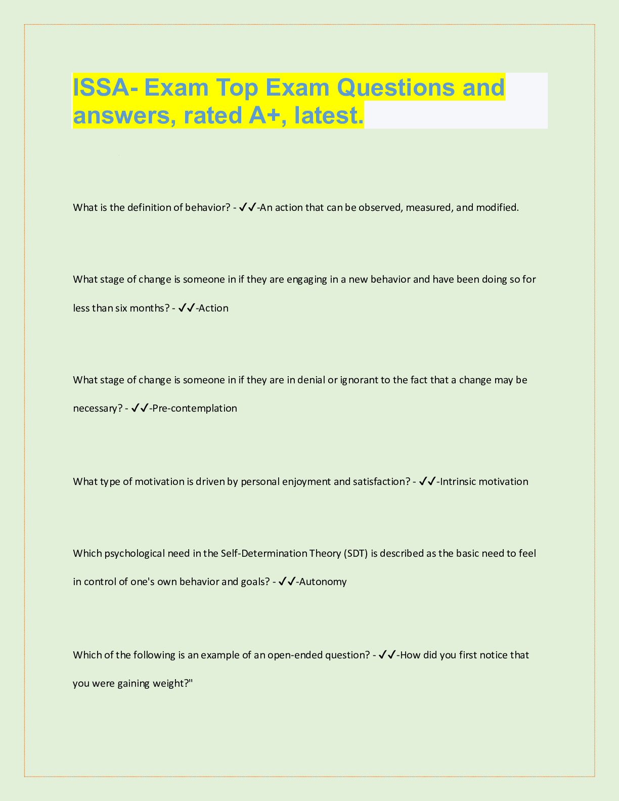 ISSA Final Exam Page 1, Questions with accurate answers, graded A+. Approved