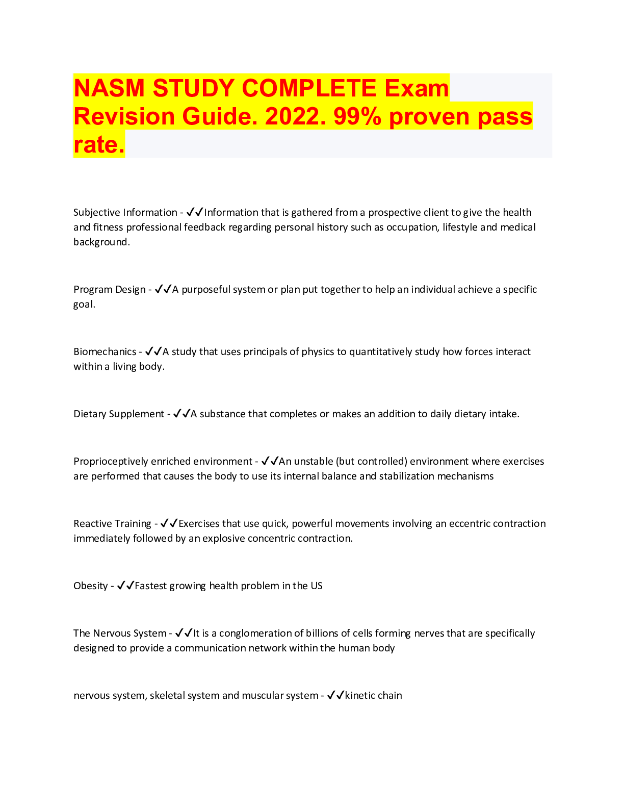 All you need to pass the NASM exam, Rated A+. download to score