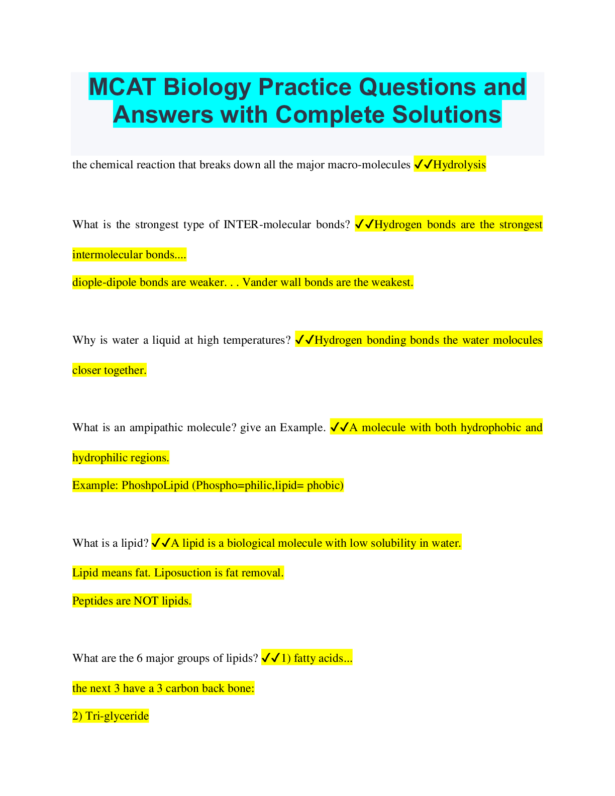 MCAT BUNDLED EXAMS QUESTIONS AND ANSWERS ALL RATED A+