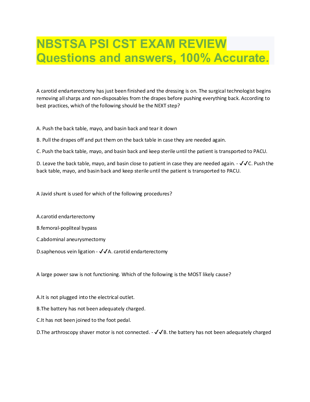 NBSTSA Practice Exam B Questions and answers, 100% Accurate. Rated A+. EASY WAY TO PASS, EXAMINABLE QUIZZES.
