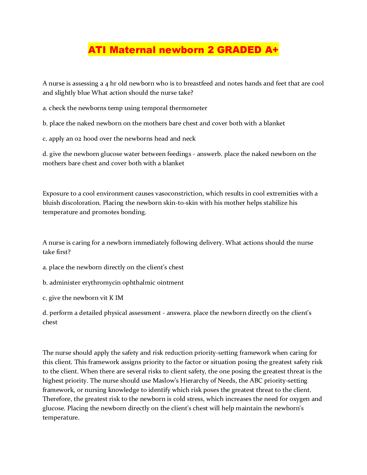 ATI MATERNAL NEWBORN BUNDLED EXAM WITH COMPLETE QUESTIONS AND ANSWERS GRADED A+...