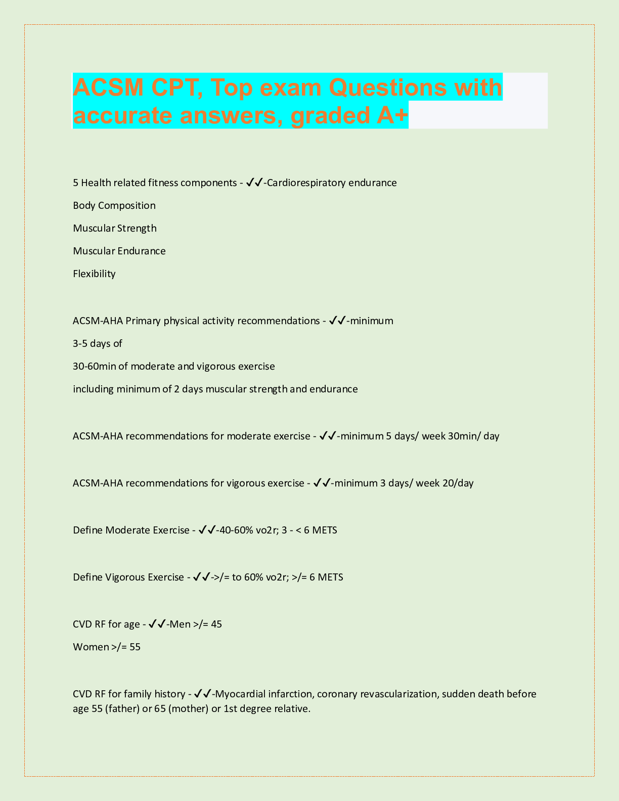 ACSM CPT Exam Review Questions & Answers, 100% Accurate. Approved. Rated A+
