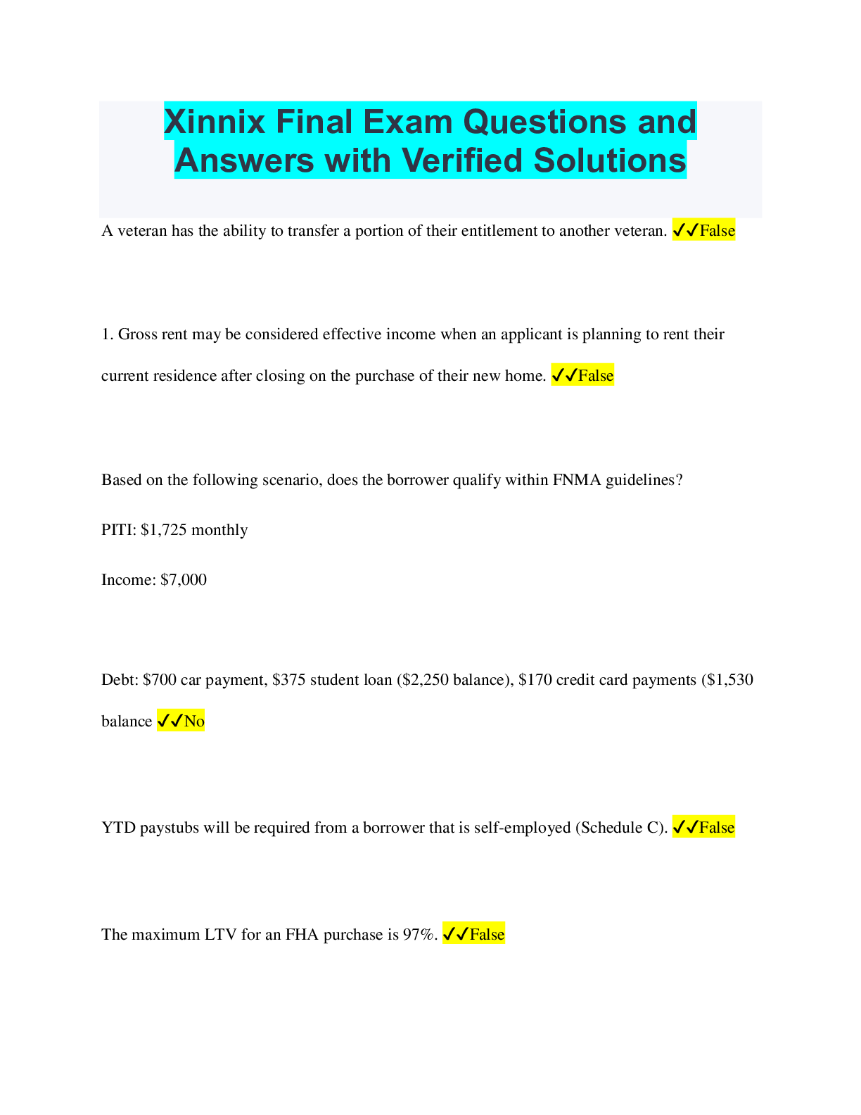 XINNIX BUNDLED EXAMS QUESTIONS AND ANSWERS WITH VERIFIED SOLUTIONS