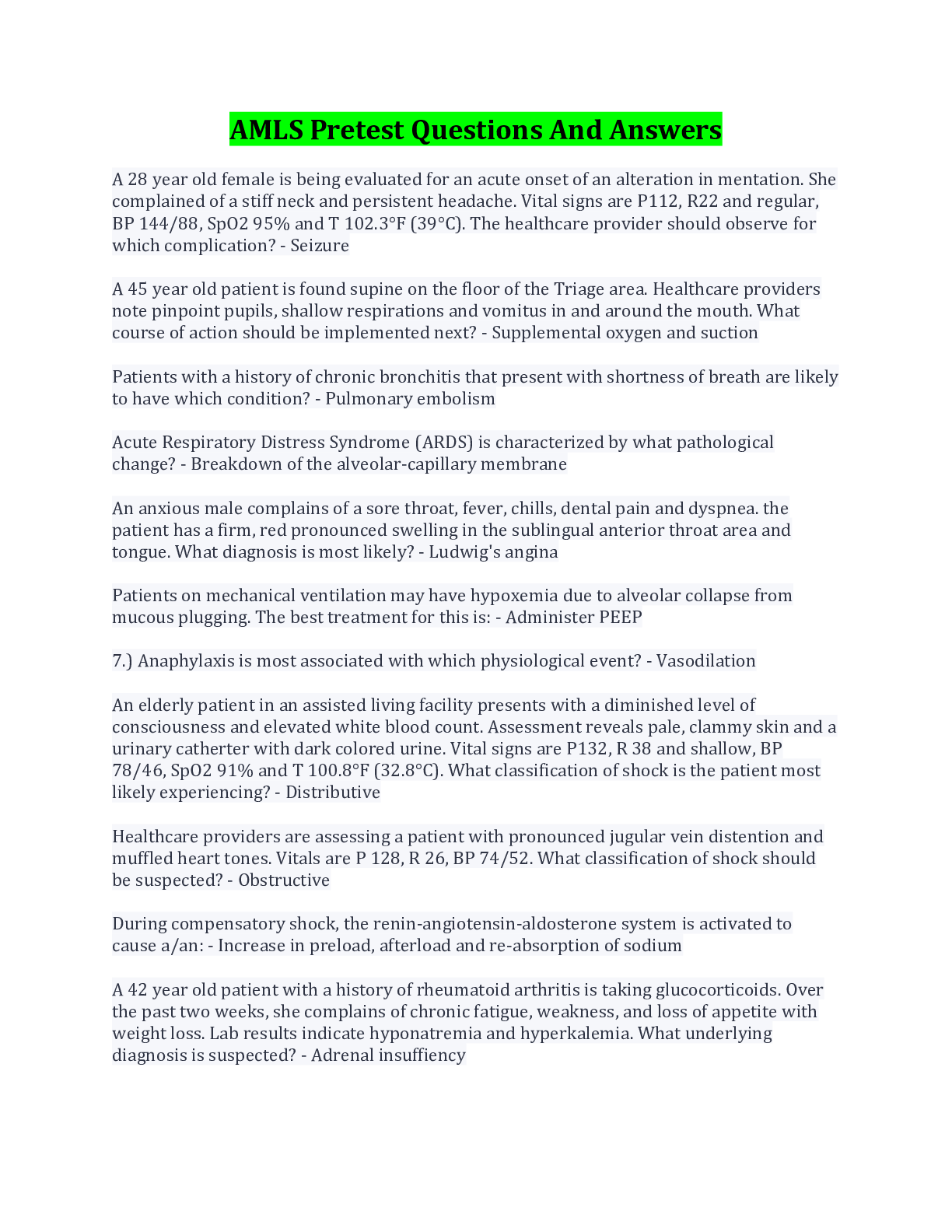 Advanced Medical Life Support (AMLS) Bundle Exams With Complete Solution