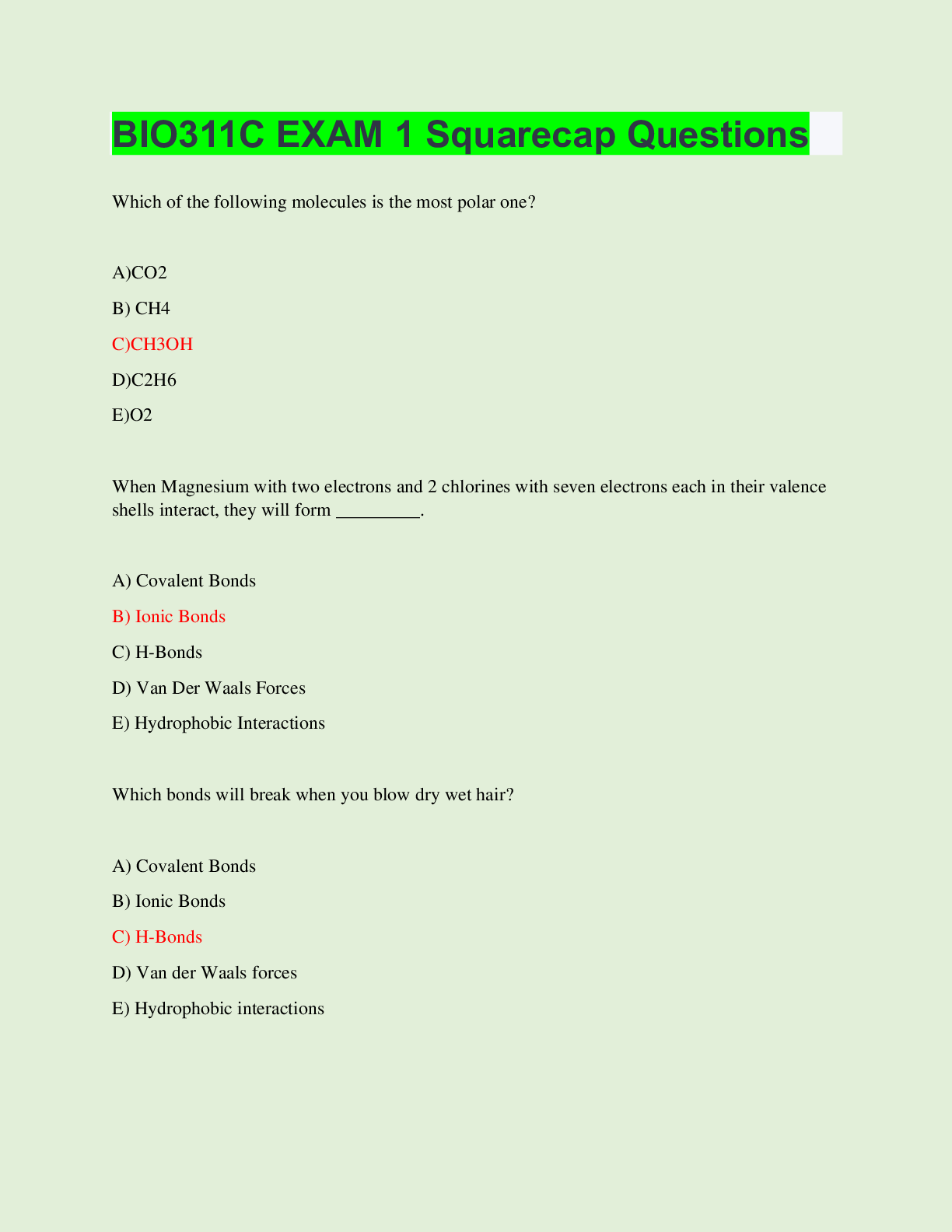 Bundle for Squarecap BIO 311C Tests | Updated & Verified | with Complete Solution