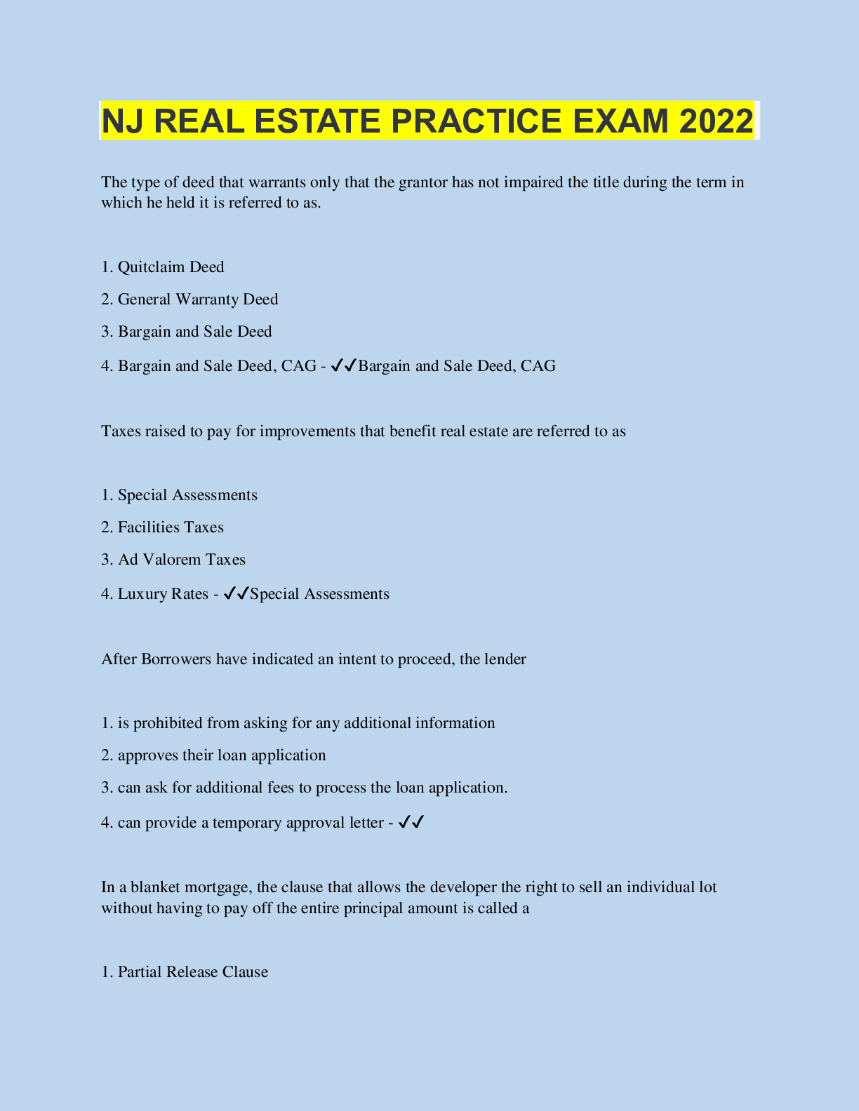 Bundle for New Jersey Real Estate Tests | Updated & Verified | with Complete Solution