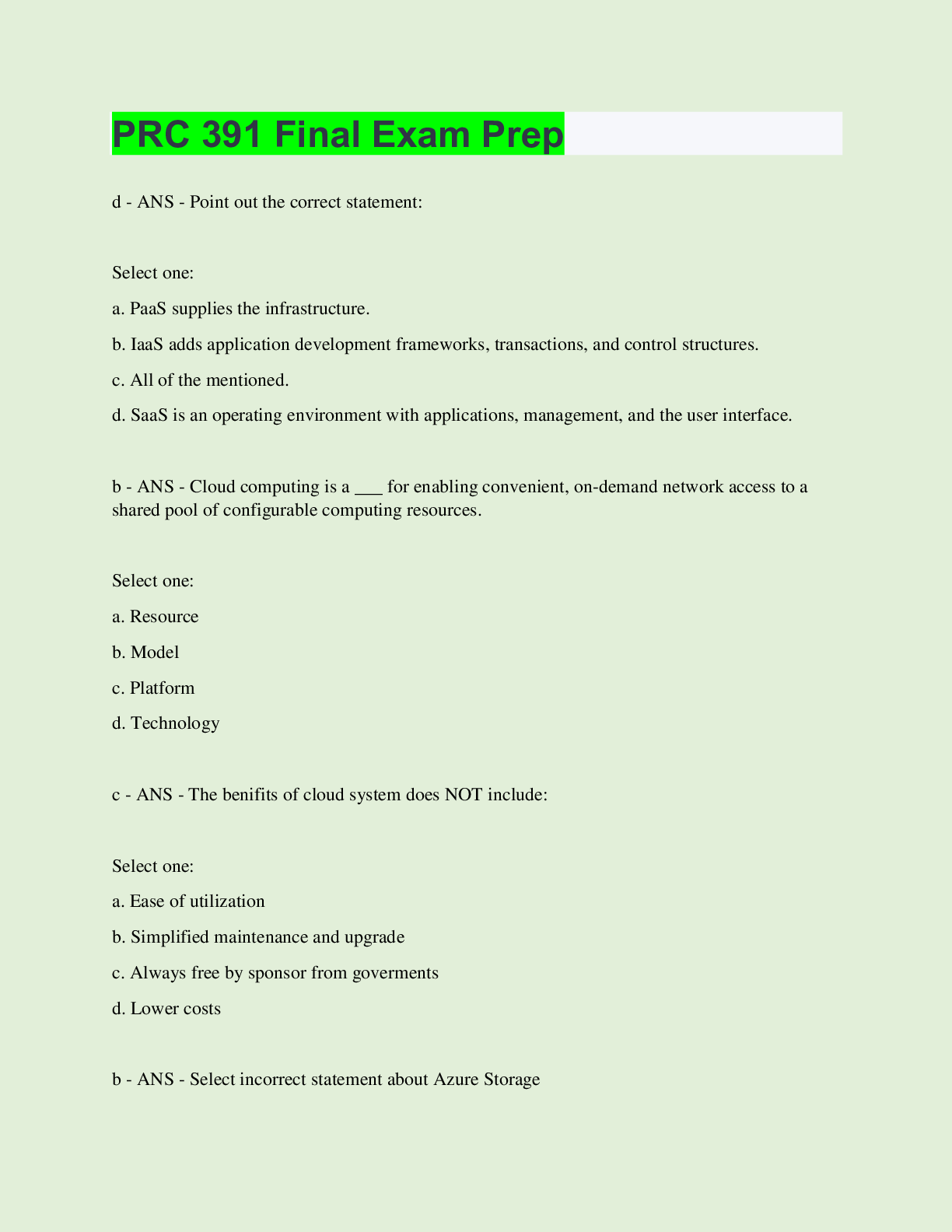 Bundle for PRC 391 Tests | Updated & Verified | with Complete Solution