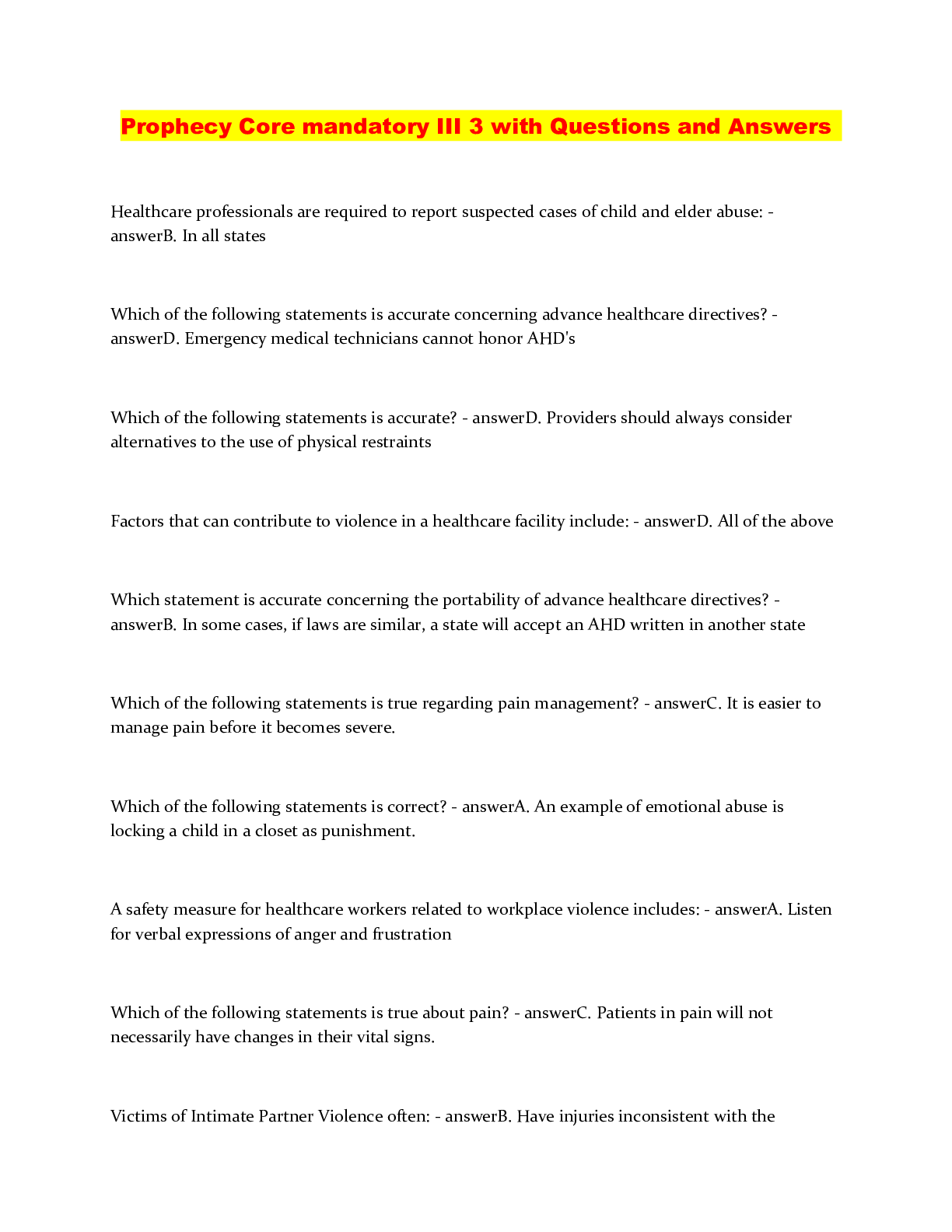 Prophecy Core Mandatory I ; II , and III Bundled Exams with complete Questions and Answers...