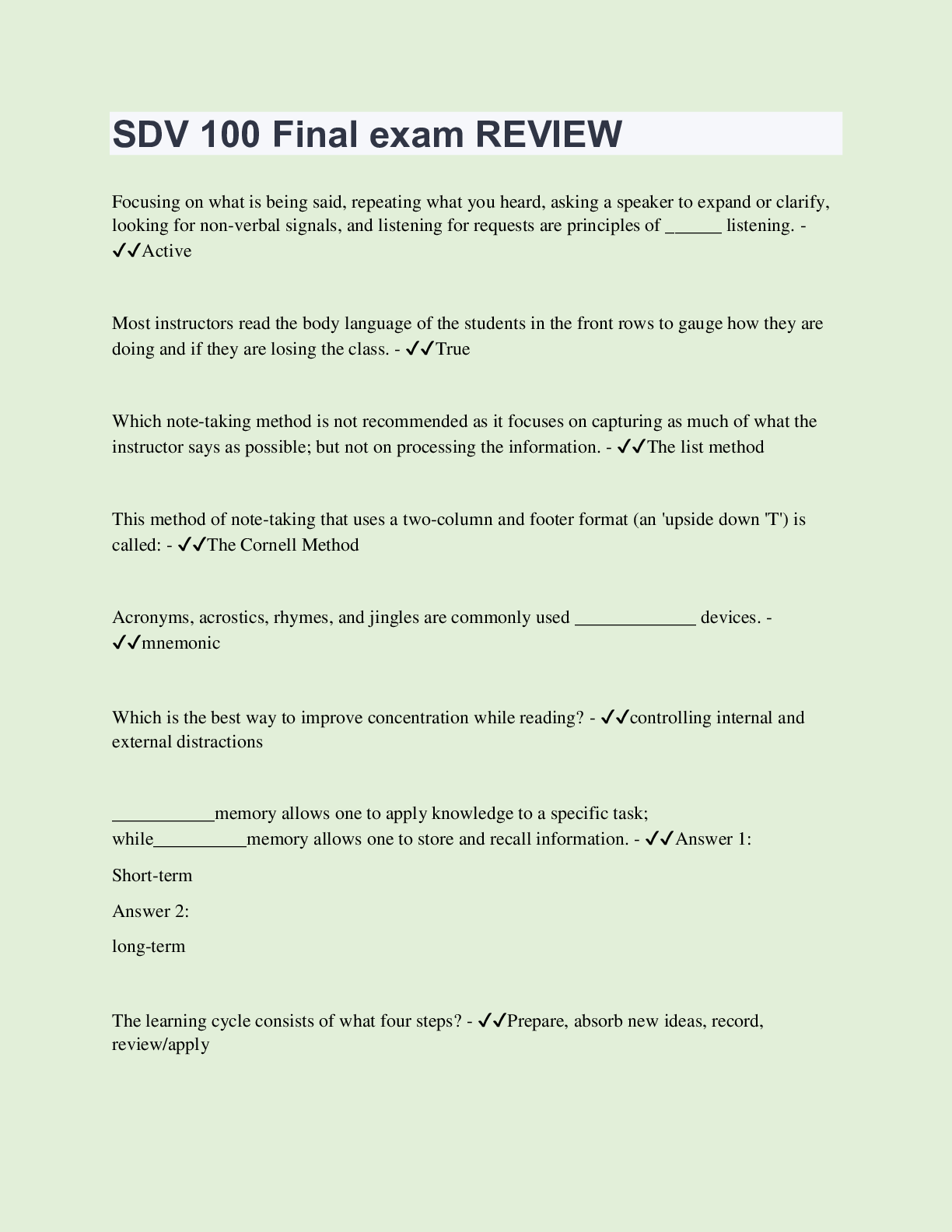 Bundle for SDV 100 Tests | Updated & Verified | with Complete Solution