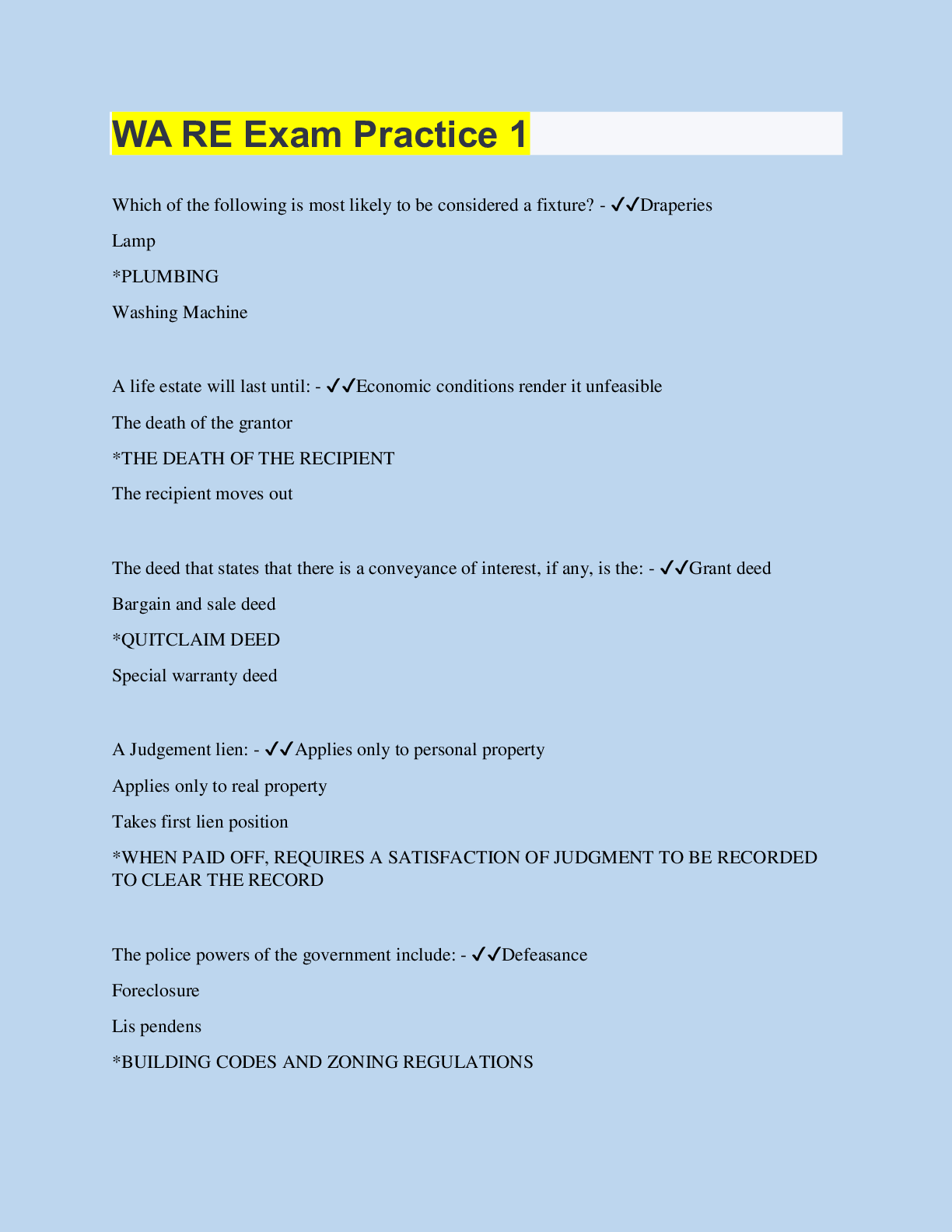 Bundle for Washington state Real Estate Tests | Updated & Verified | with Complete Solution