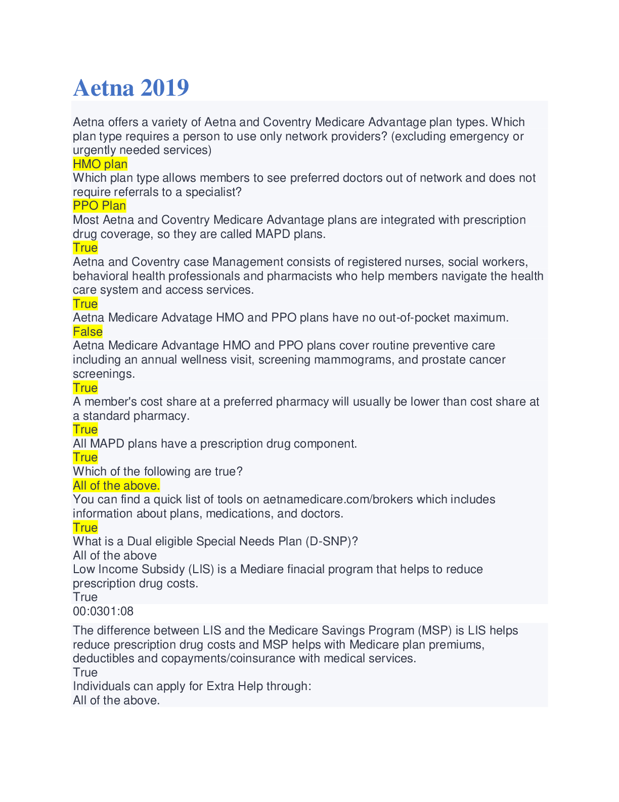 Aetna 2019 Questions and Answers Rated A+ Aetna Individual Core Certification Mastery Test Questions and Answers Aetna Individual Prescription Drug Plans; Mastery Test Questions and Answers Aetn...