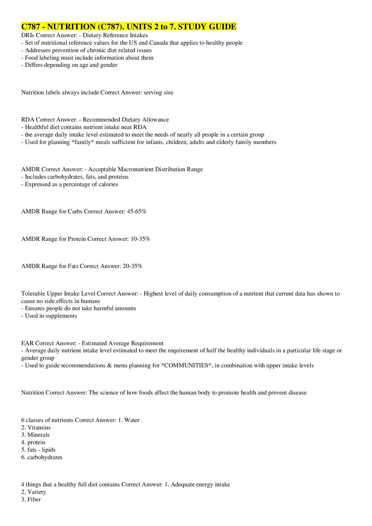 DRIs Correct Answer: - Dietary Reference Intakes - Set of nutritional reference values for the US and Canada that applies to healthy people - Addresses prevention of chronic diet related issues - F...