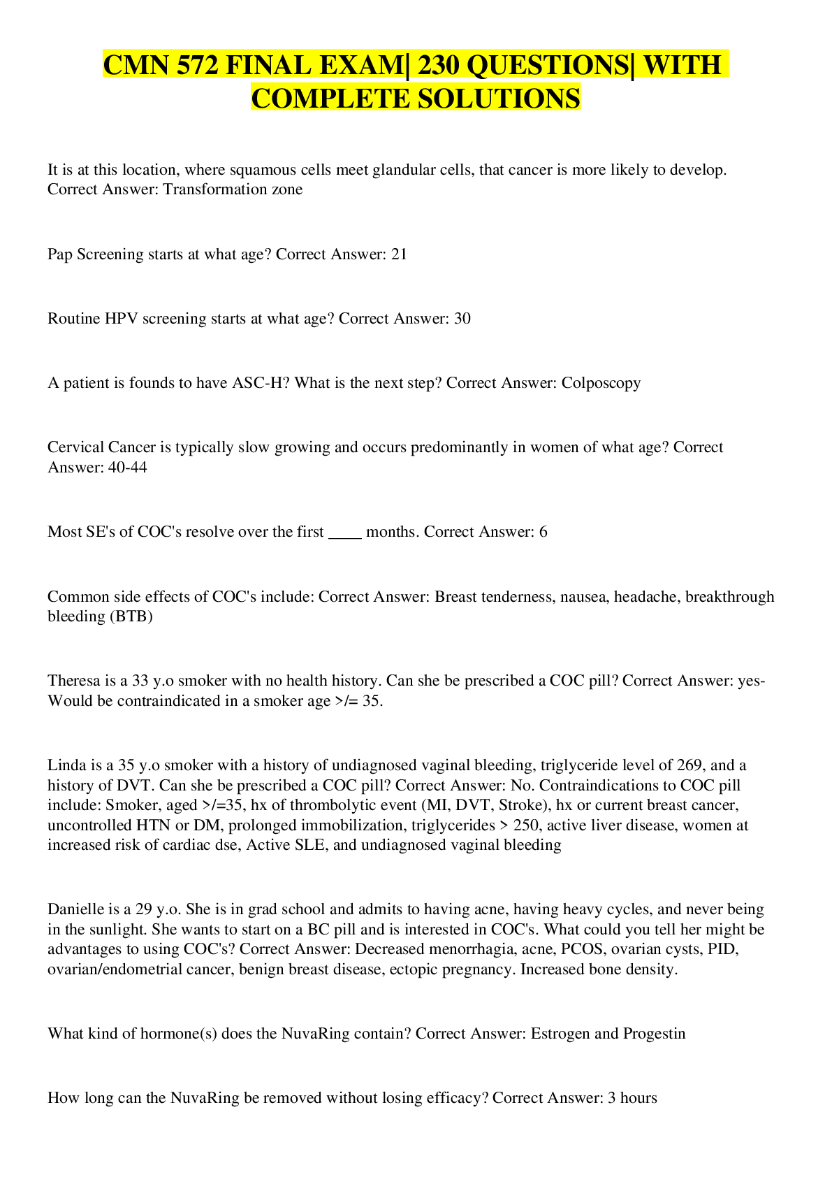 Maryville NURS 620 Adult 1 EXAM 1 Questions with Answers 2022/2023 Maryville NURS 620 Exam 4 Questions with Answers 2022/2023 Maryville NURS 620 Exam 3 Questions and Answers with Multiple Choices...